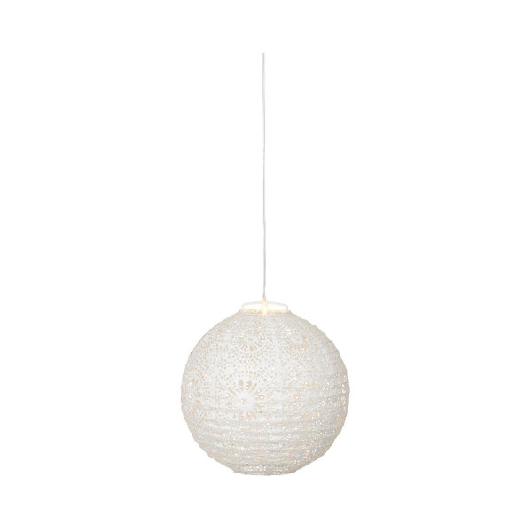 Die LED-Solarlaterne SOLERIA wird aus weißem Kunststoff gefertigt. Diese Solarleuchte besitzt einen Durchmesser von 25 cm sowie eine Höhe von 23 cm. Das fest verbaute LED-Leuchtmittel wird über ein integriertes Solarmodul gespeist, welches eine Leuchtdauer von bis zu 6 Stunden ermöglicht. Zur Platzierung ist die Gartenlaterne mit einer Aufhängung versehen.