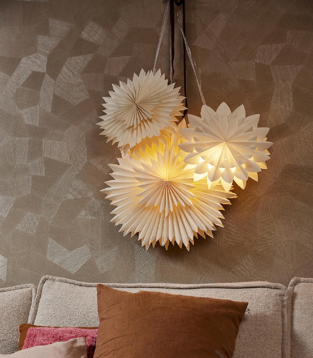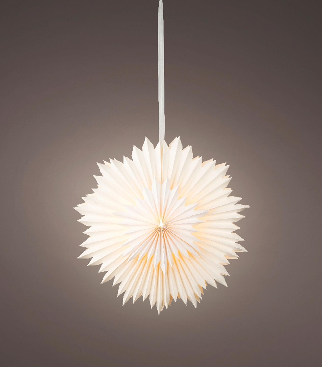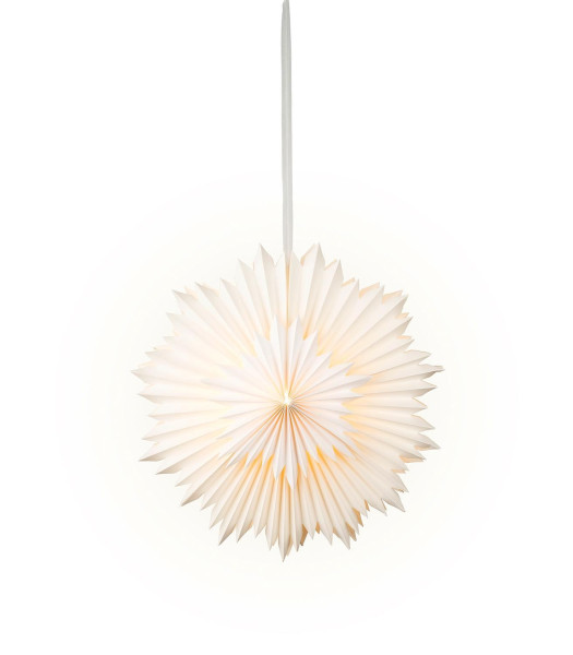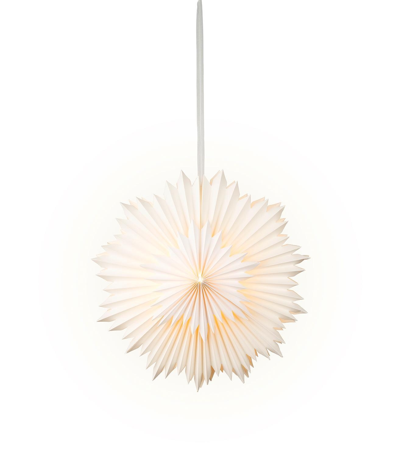 Der LED-Weihnachtsstern ZALINE ist ein eleganter, weißer Papierstern mit integriertem LED-Leuchtmittel, das für stimmungsvolles Licht sorgt. Mit einem Durchmesser von 60 cm und einer Tiefe von 15 cm passt er perfekt in jede Dekoration. Dank des praktischen 6-Stunden-Timers schaltet sich der Stern automatisch an und aus. Er wird mit Bändern geliefert und kann einfach aufgehängt werden.