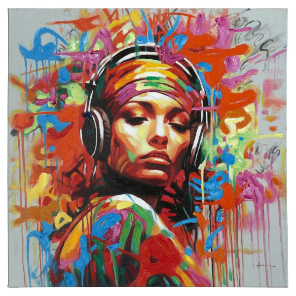 90 x 90 cm - Blau - Grün - Rot- Gelb - Frau mit Kopfhörer