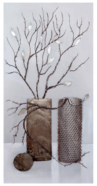 Grau - Braun - Silbergrau - Holz - 40 x 80 cm - Vasen mit Magnolienästen