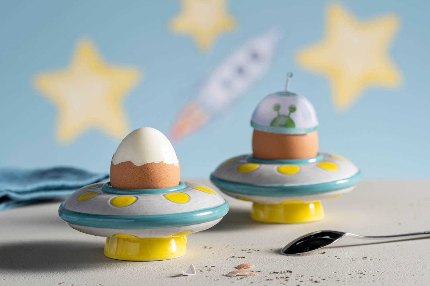 Der Eierbecher BAMBINI AVVENTUR von Leonardo ist ein farbenfrohes Highlight auf jedem Frühstückstisch. Er ist aus Keramik gefertigt und in den Farben Blau, Gelb und Grau gehalten. Das kreative Design in Form eines Ufos macht ihn besonders ansprechend. Dieser Eierbecher ist nur für die Handwäsche geeignet, um seine Qualität und Farben zu bewahren. Mit einem Durchmesser von 10,5 cm und einer Höhe von 4,8 cm bietet er die perfekte Größe für Ihr Frühstücksei und bringt Spaß in den Morgen.