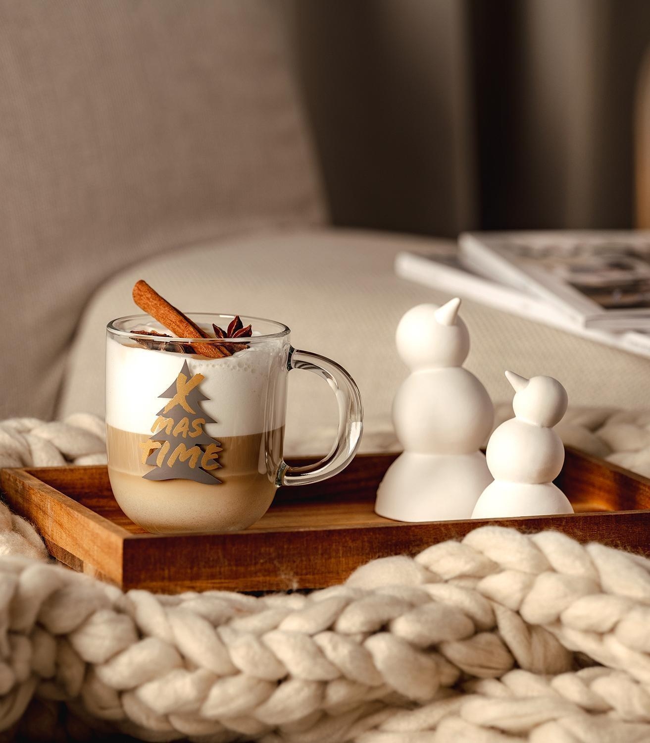 400 ml - Schwarz - Braun - Transparent - Glas - mit Schriftzug "XMAS TIME"