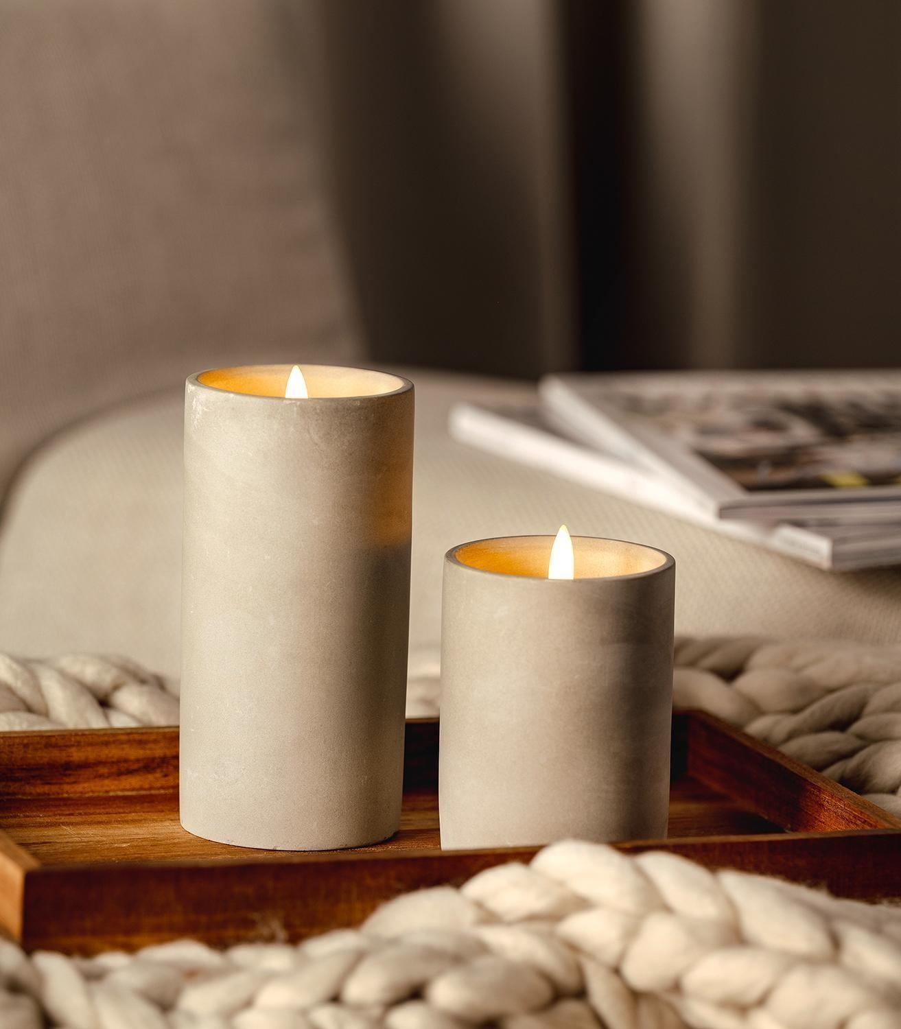 8 x 15 cm - Grau - Weiß - Beton - Kunststoff - batteriebetrieben