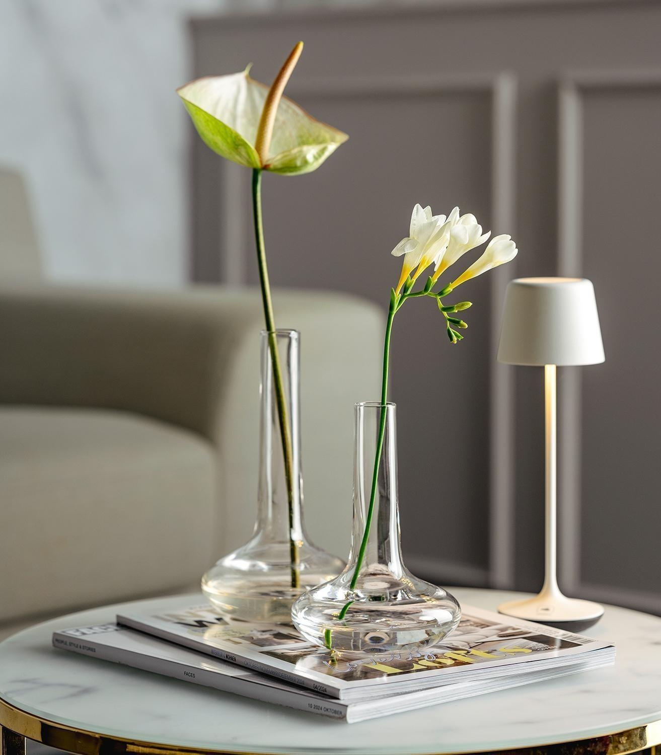 Die Vase ARIA von Leonardo ist ein stilvolles Einzelstück aus transparentem Kalk-Natron-Glas. Mit einer Höhe von 21 cm und einem Durchmesser von 10 cm eignet sie sich ideal für frische Blumen, Pampasgras oder Trockenarrangements. Dank ihrer wasserdichten Verarbeitung ist sie vielseitig einsetzbar. Das transaprente Design bringt Leichtigkeit in jeden Raum und unterstreicht die natürliche Schönheit des Inhalts – perfekt für moderne Wohnakzente.