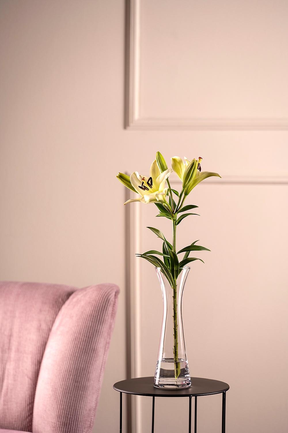Die Vase GIA von Leonardo ist ein stilvolles Einzelstück aus klarem, handgefertigtem Glas. Mit einer Höhe von 26 cm und einem Durchmesser von 8 cm eignet sie sich ideal für frische Blumen, Pampasgras oder Trockenarrangements. Dank ihrer wasserdichten Verarbeitung ist sie vielseitig einsetzbar. Das transparente Design bringt Leichtigkeit in jeden Raum und unterstreicht die natürliche Schönheit des Inhalts – perfekt für moderne Wohnakzente.