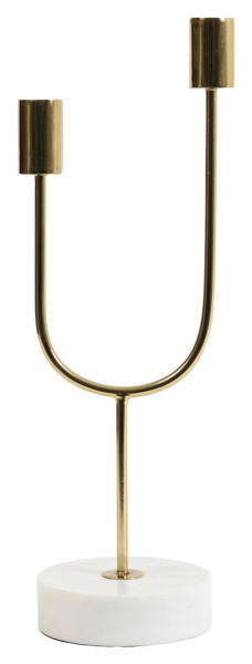Goldgelb - Weiß - Metall - Marmorfuß - H 35 cm - für 2 Stabkerzen