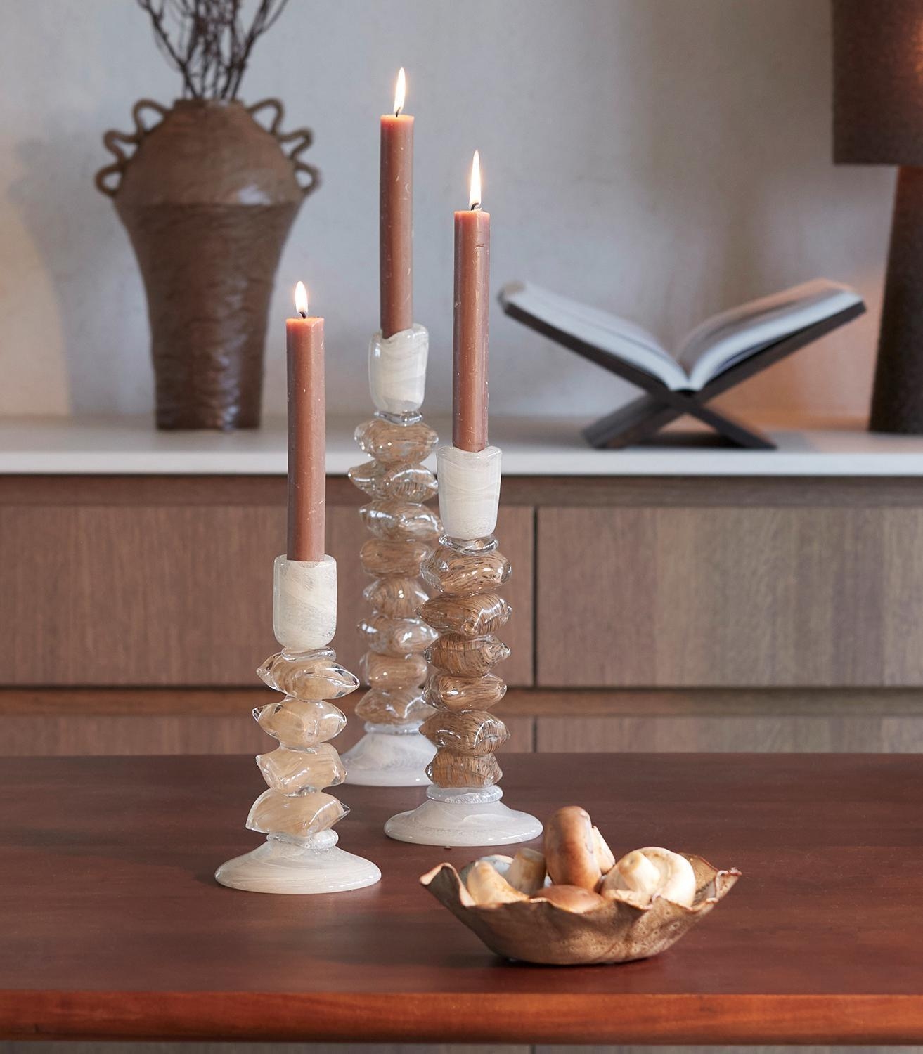H 23 cm - Creme - Braun - Glas - für Stabkerzen geeignet