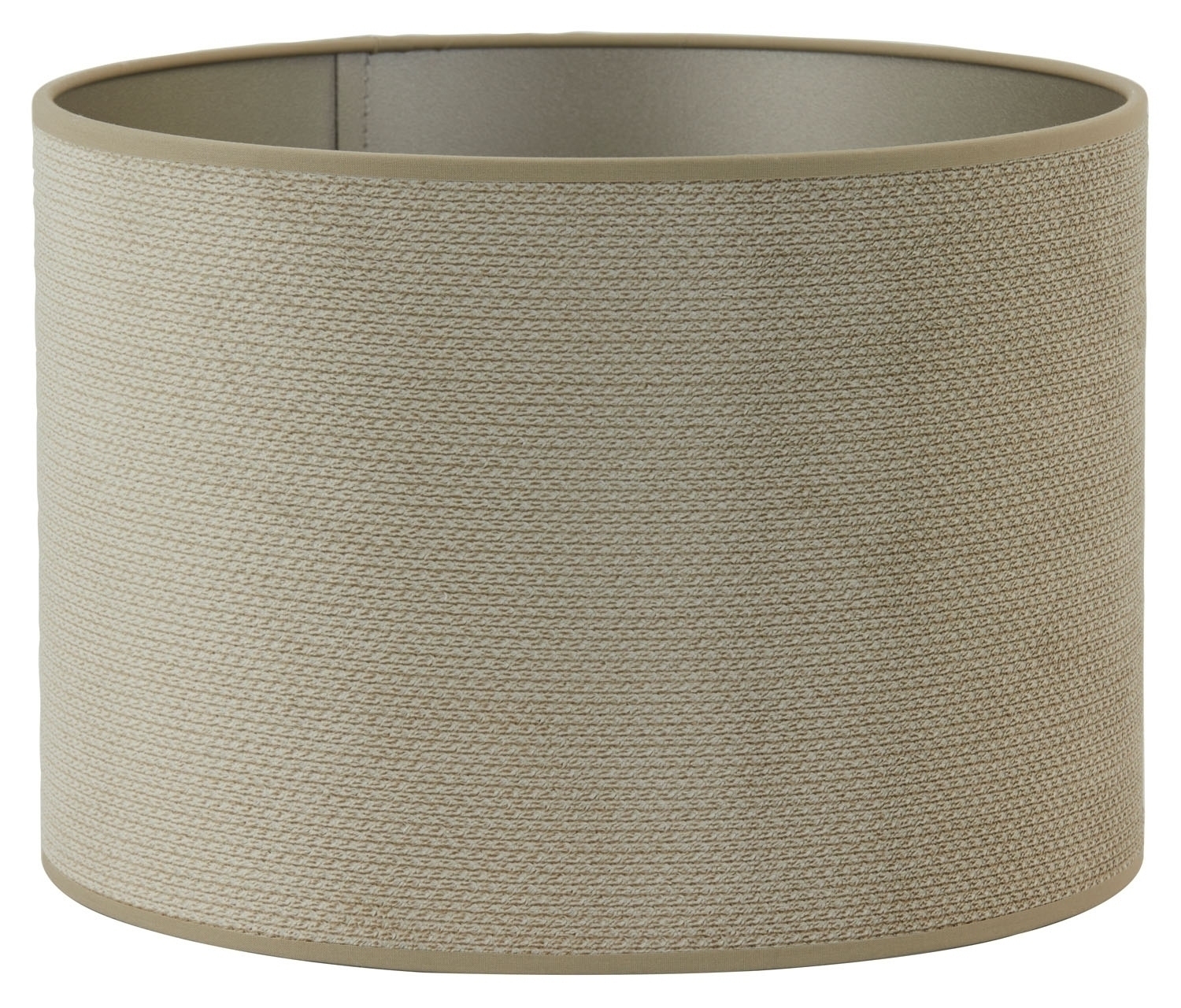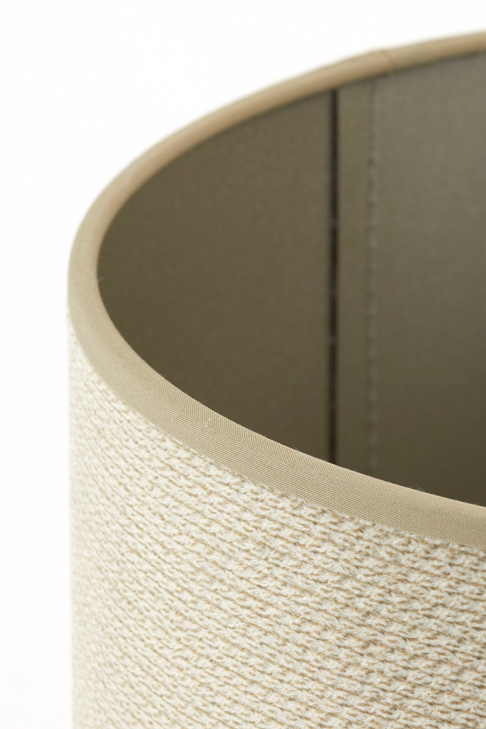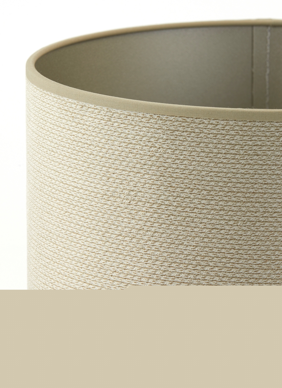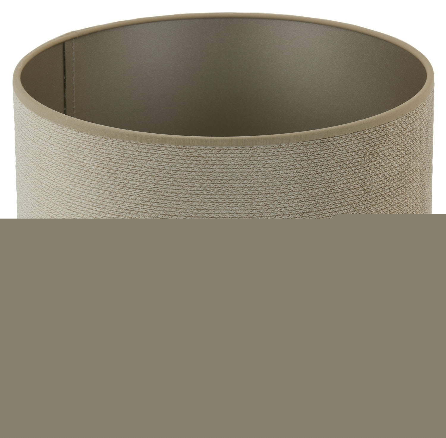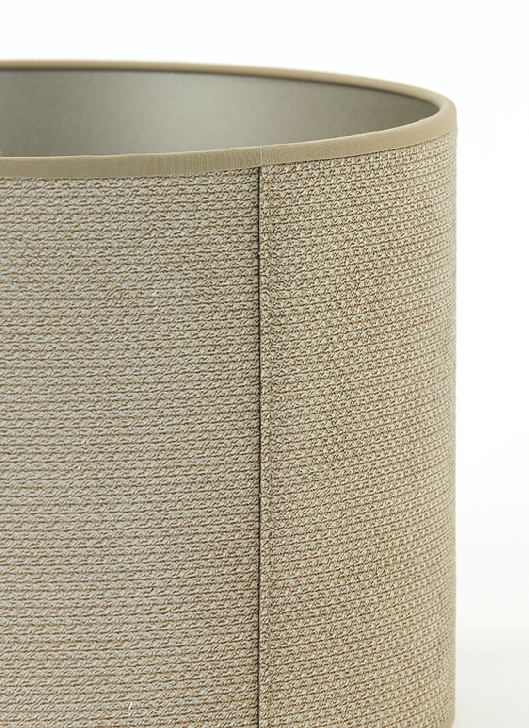 Ein eleganter Lampenschirm in Beige aus hochwertigem Stoff, der mit einem Durchmesser von 20 cm ideal für Lampenfassungen E27 geeignet ist. Die Innenseite des Schirms ist mit metallicfarbenem PVC ausgekleidet und die Halterung besteht aus robustem Metall.
