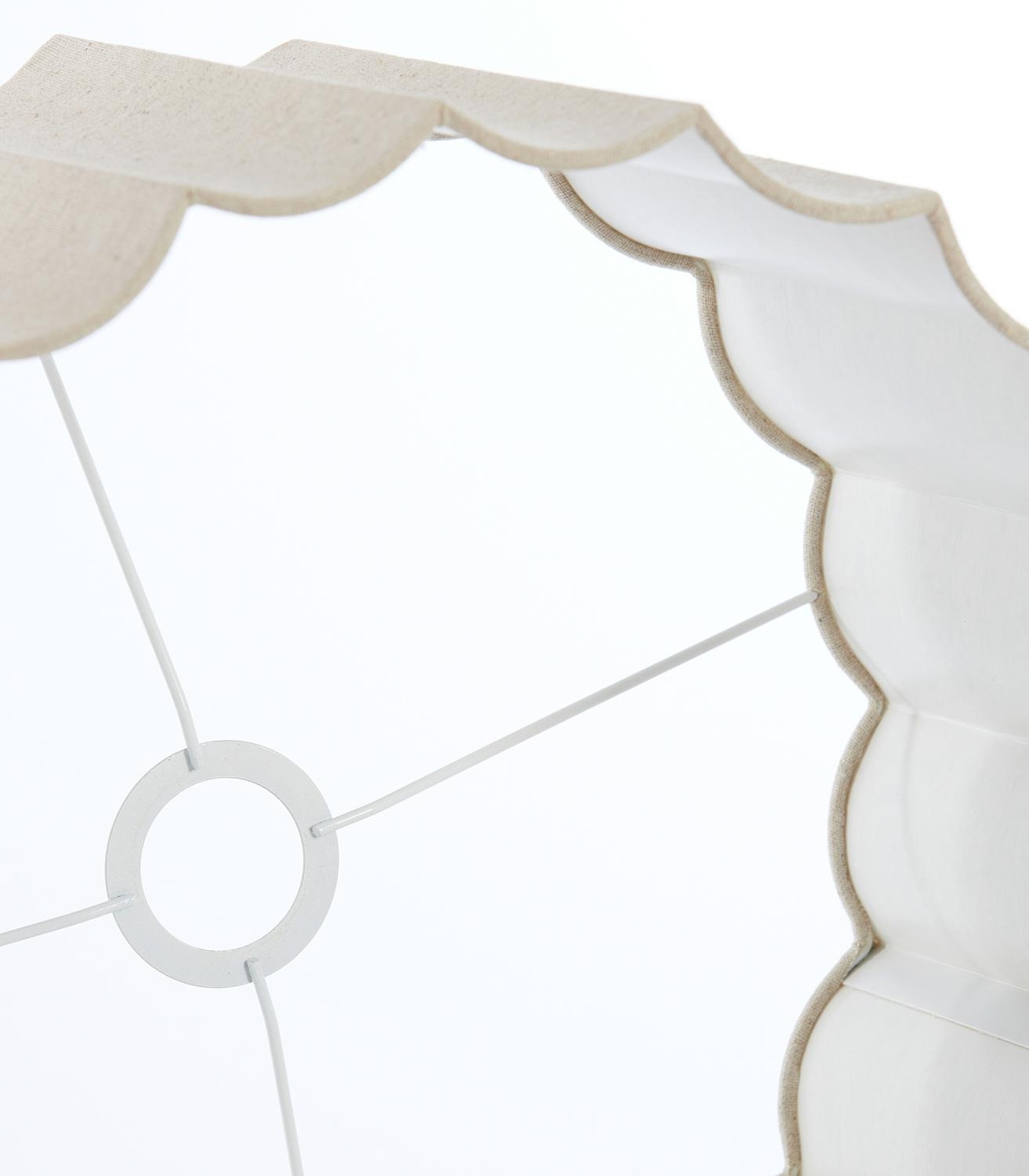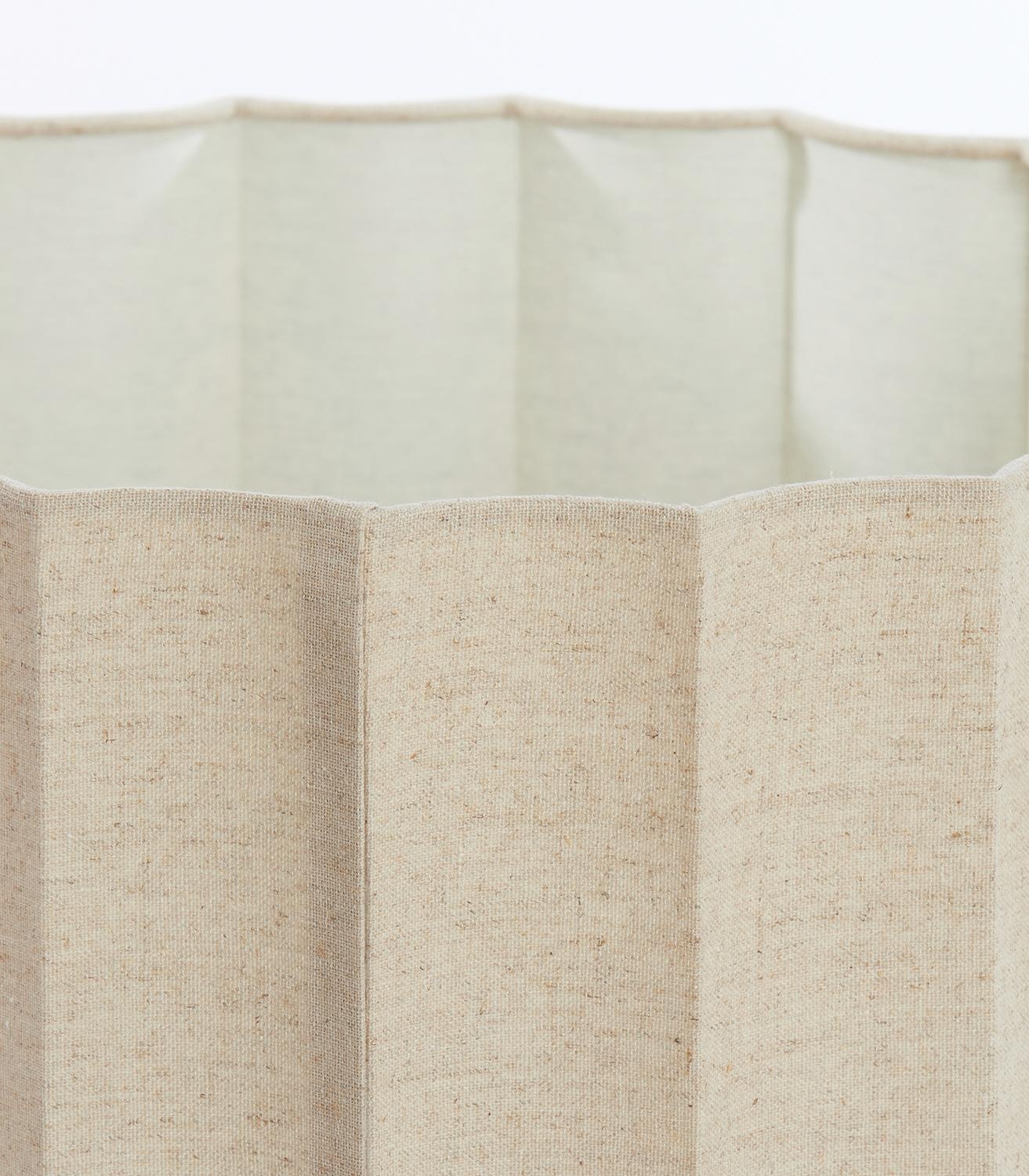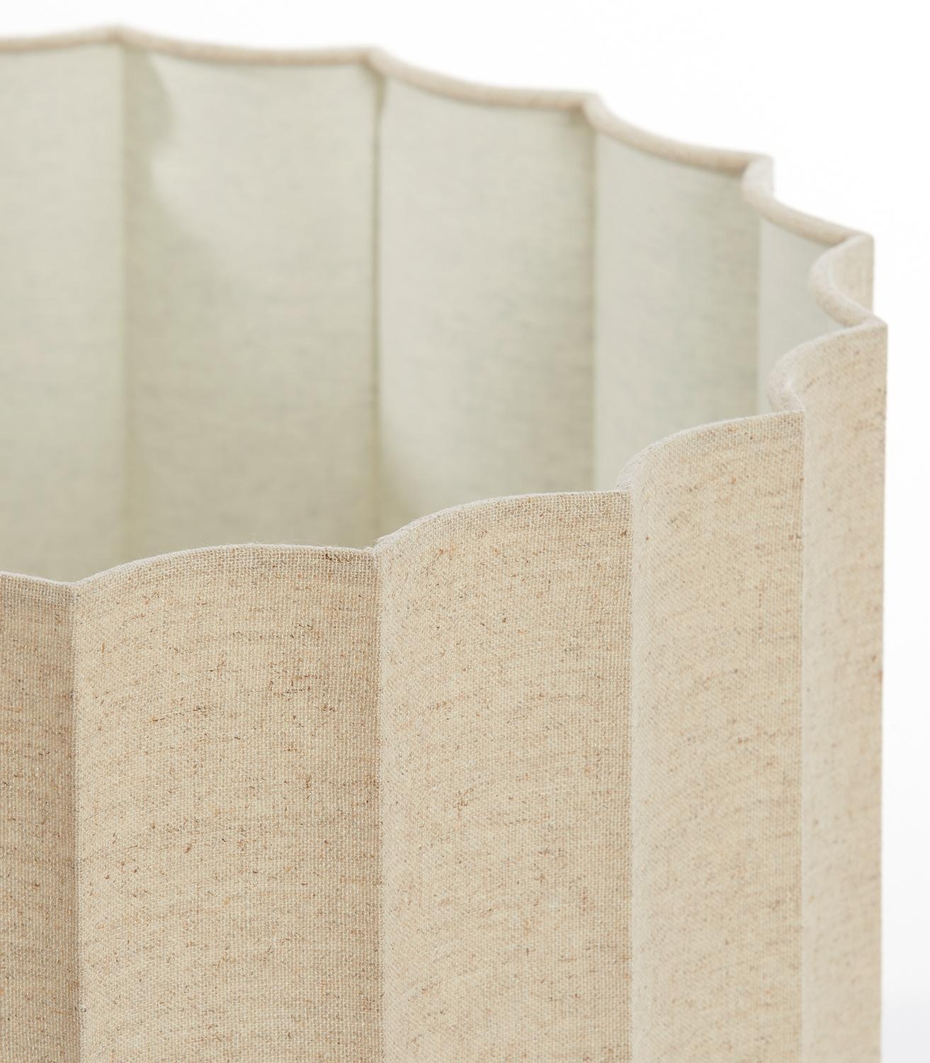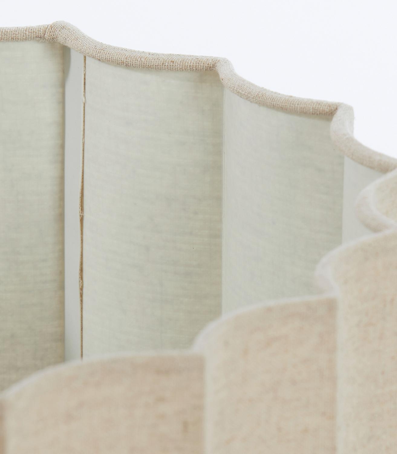 Der Lampenschirm DISLI der Marke Light & Living wird aus Textil in der Farbe Beige gefertigt und verfügt über ein wellenförmiges Muster. Dieser Textilschirm besitzt einen Durchmesser von 35 cm sowie eine Höhe von 22 cm. Die Lieferung erfolgt ohne Lampenfuß und ohne Fassung. Aufgrund der neutralen Farbgebung und der strukturierten Oberfläche kann dieser Lampenschirm vielseitig mit unterschiedlichen Gestellen kombiniert werden.
