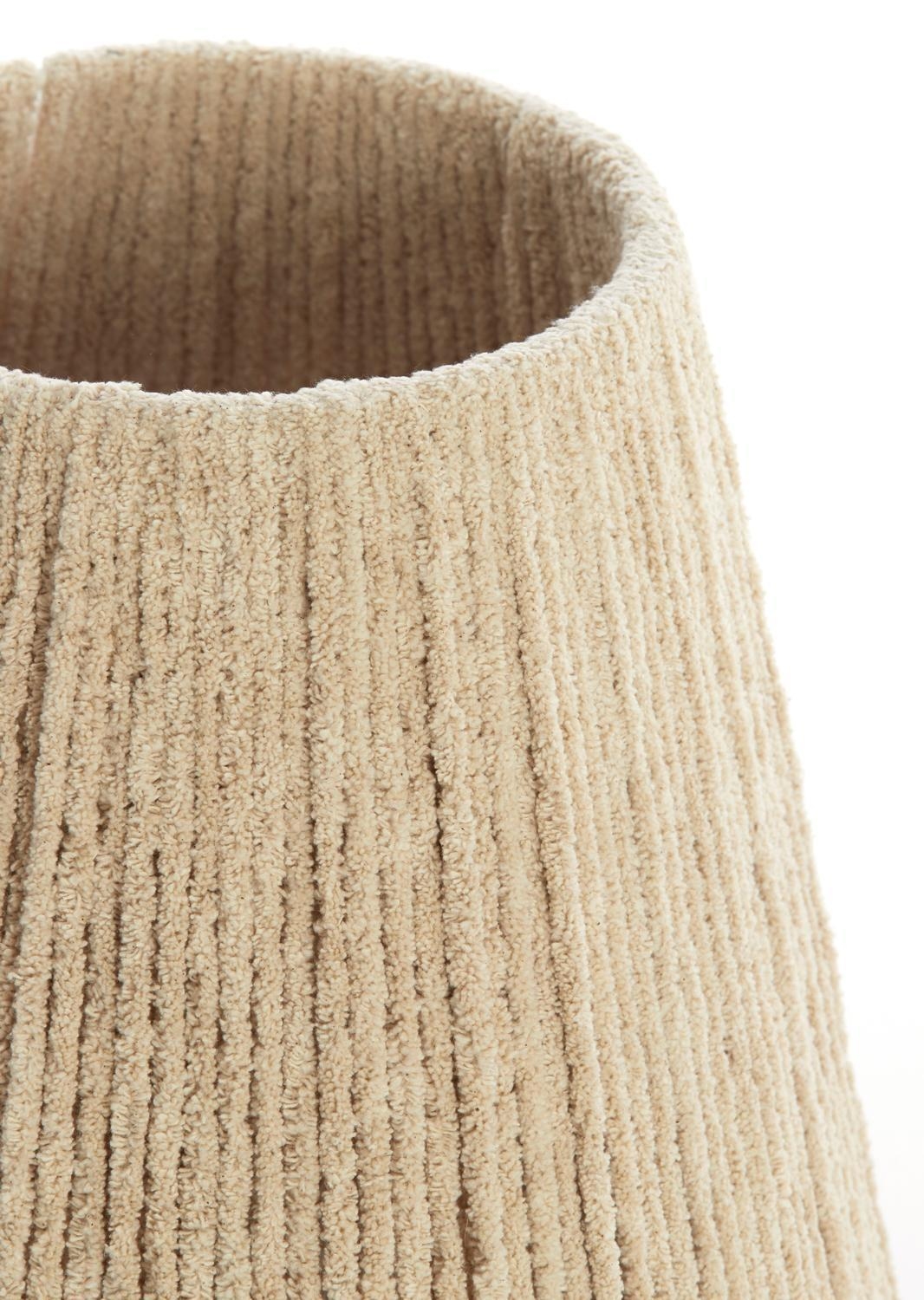 Der Lampenschirm MEDANA der Marke Light & Living besteht aus Chenille in der Farbe Creme und verfügt über eine Halterung aus Eisen. Er wird ohne Lampenfuß geliefert und ist für Leuchtmittel mit einer E27-Fassung geeignet. Die Abmessungen des Lampenschirms betragen 35 cm in der Breite, 30 cm in der Höhe und 20 cm in der Tiefe.