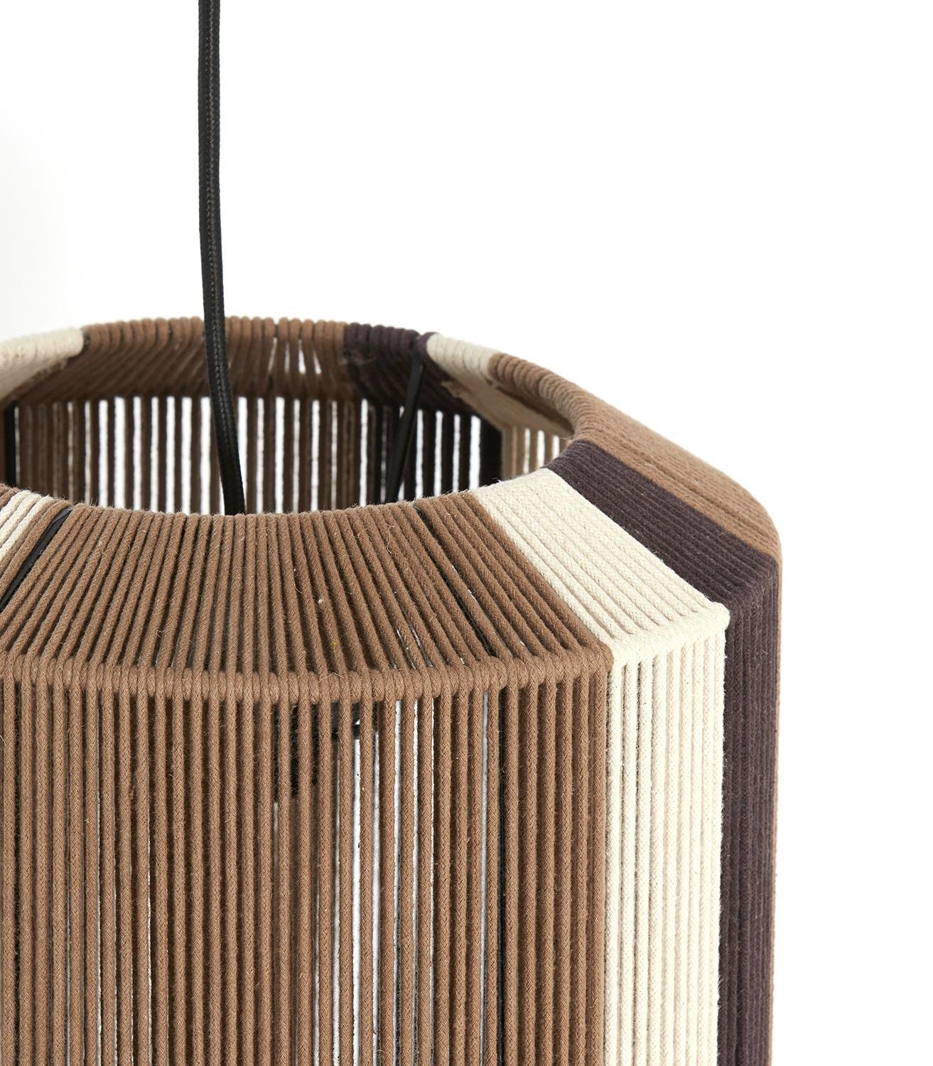 Die Pendelleuchte KOZANA von der Marke Light & Living zeichnet sich durch eine Kombination verschiedener Materialien aus. Die Deckenaufhängung sowie die tragenden Streben sind aus schwarzem Metall gefertigt. Als Kontrast dient der Lampenschirm, der aus Textil in den Farben Braun und Creme besteht. Die Leuchte besitzt einen Durchmesser von 30 cm sowie eine Höhe von 46 cm. Für den Betrieb ist ein einzelnes Leuchtmittel erforderlich, das nicht im Lieferumfang enthalten ist. Dieses muss den Typ E27 aufweisen und darf eine maximale Leistung von 40 Watt nicht überschreiten.