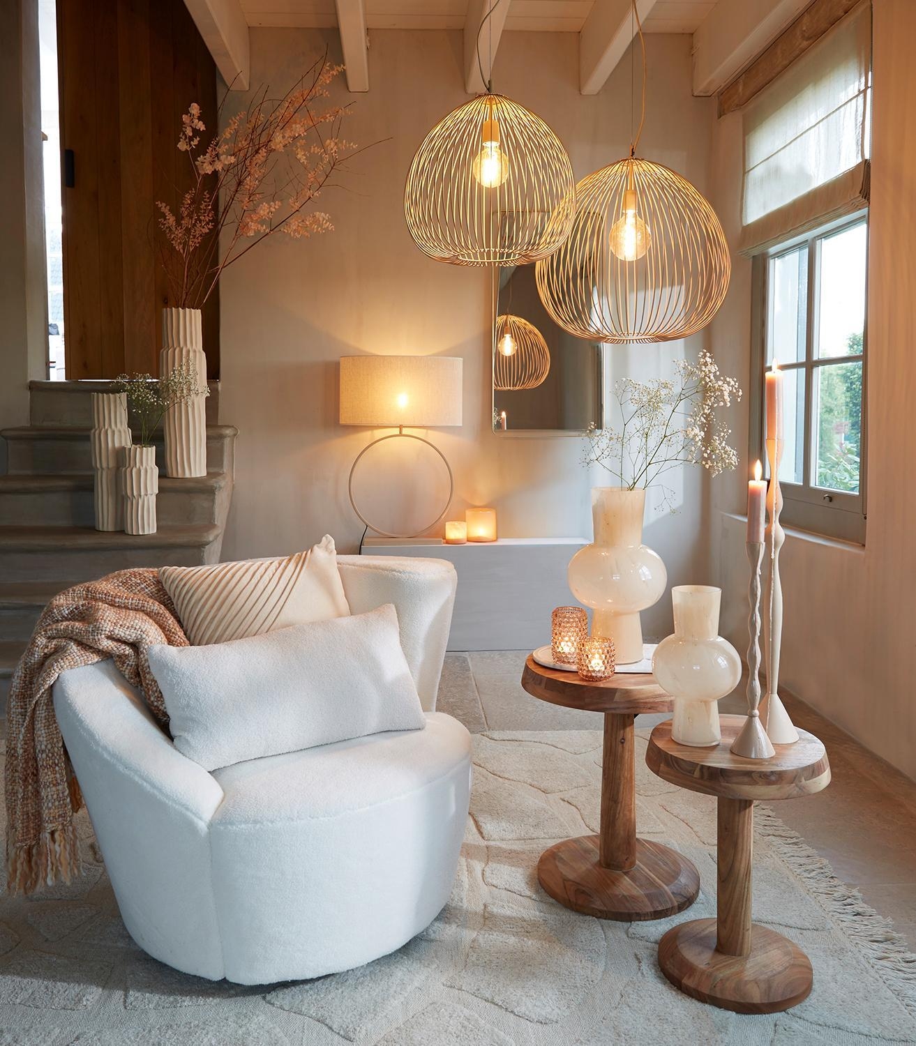 Die Pendelleuchte RILANA der Marke Light & Living besteht aus Metall in Beige matt. Der Lampenschirm mit runder Form hat einen Durchmesser von 34 cm bei einer Höhe von 35 cm. Die Hängeleuchte verfügt über eine E27-Fassung, welche für ein austauschbares Leuchtmittel mit einer Leistung von maximal 40 Watt vorgesehen ist. Ein Leuchtmittel gehört nicht zum Lieferumfang.