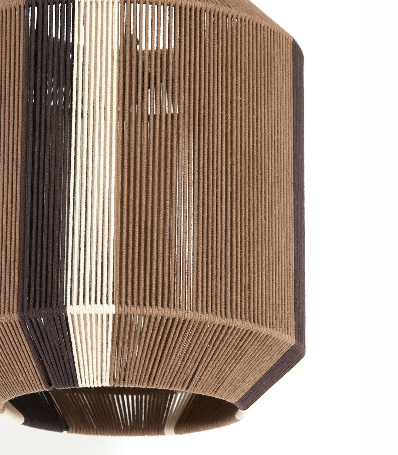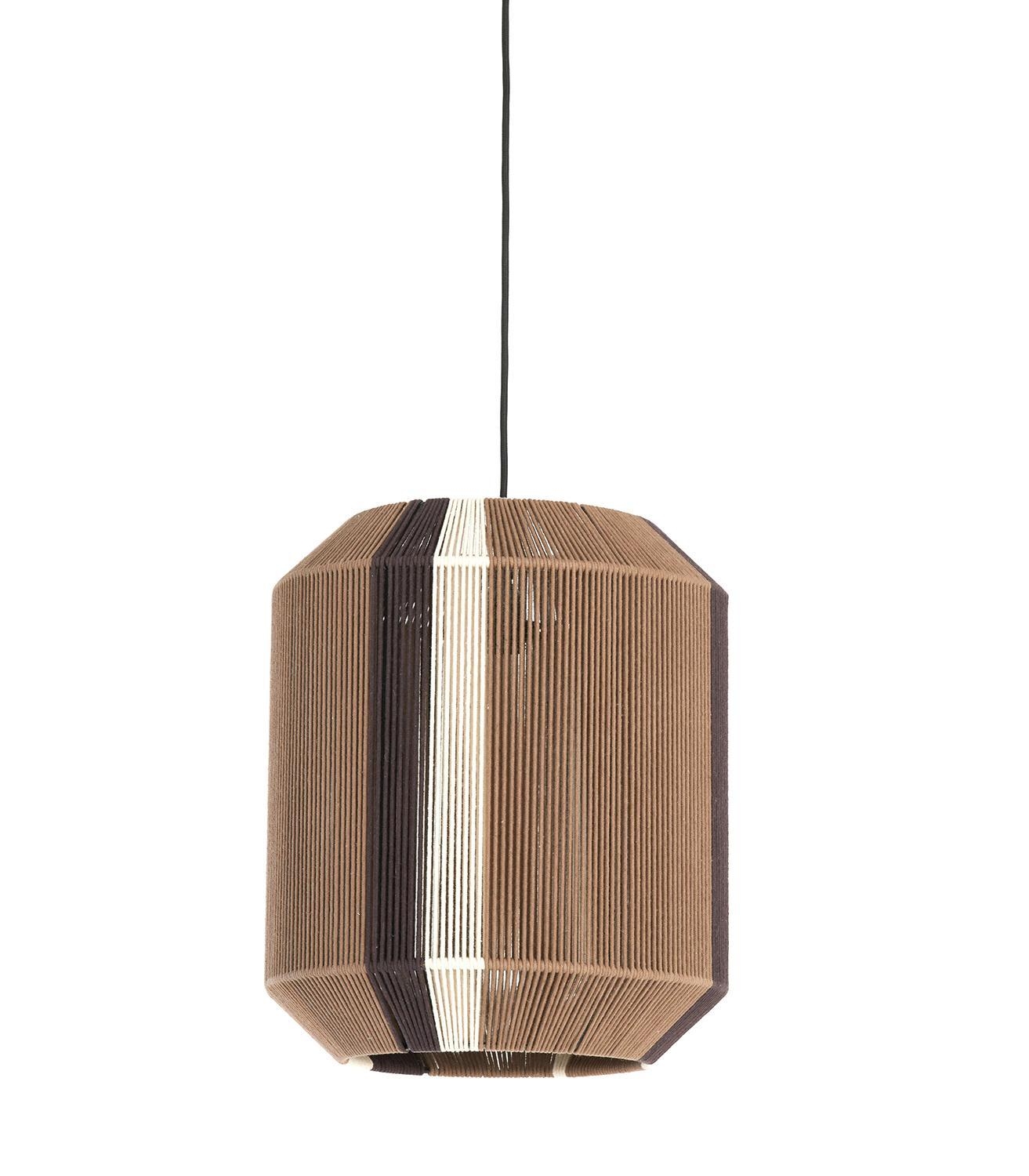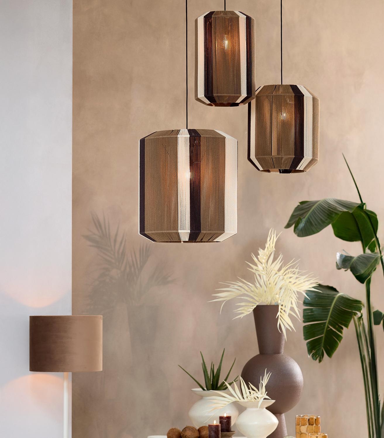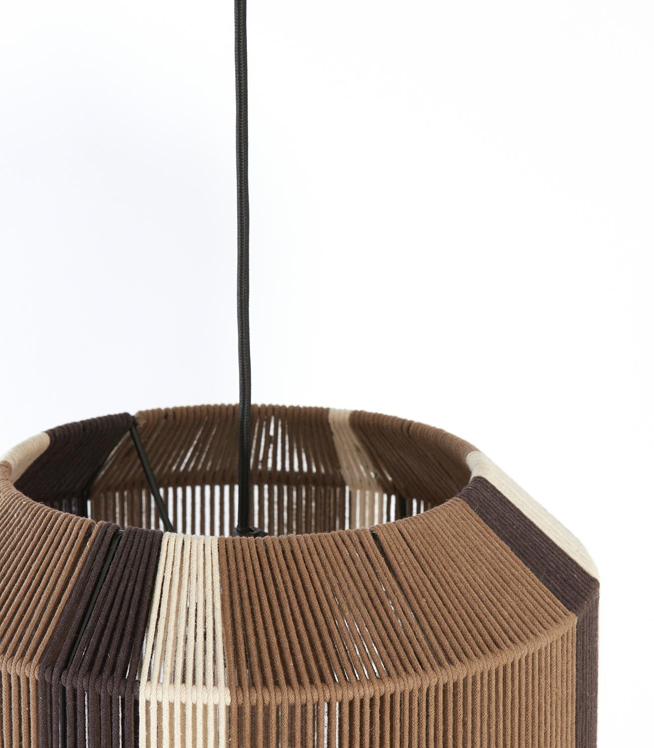 Die Pendelleuchte KOZANA von der Marke Light & Living zeichnet sich durch eine Kombination verschiedener Materialien aus. Die Deckenaufhängung sowie die tragenden Streben sind aus schwarzem Metall gefertigt. Als Kontrast dient der Lampenschirm, der aus Textil in den Farben Braun und Creme besteht. Die Leuchte besitzt einen Durchmesser von 36 cm sowie eine Höhe von 43 cm. Für den Betrieb ist ein einzelnes Leuchtmittel erforderlich, das nicht im Lieferumfang enthalten ist. Dieses muss den Typ E27 aufweisen und darf eine maximale Leistung von 40 Watt nicht überschreiten.