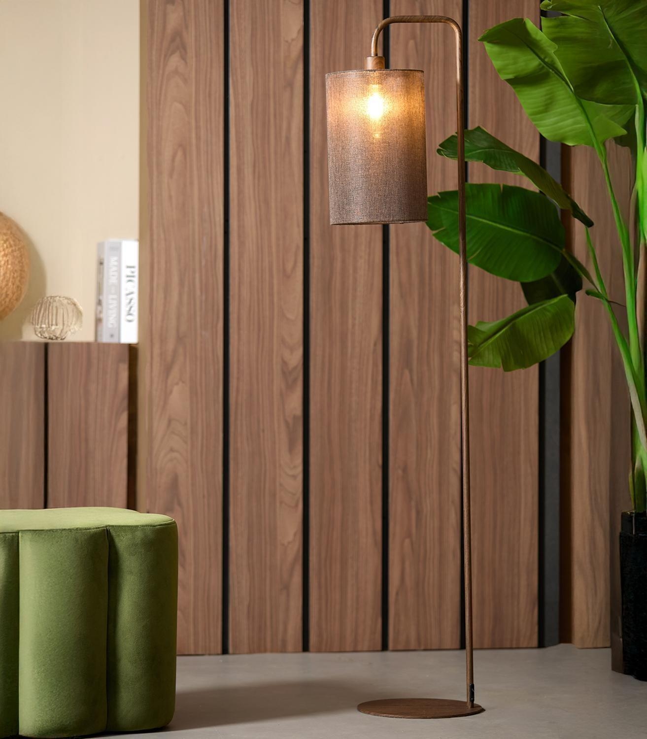 - Stehlampe aus Metall in dunkelbrauner Holzoptik