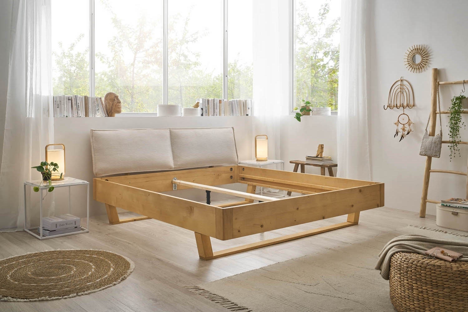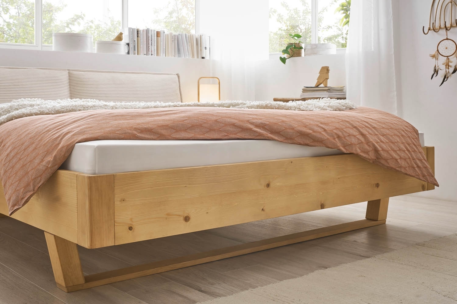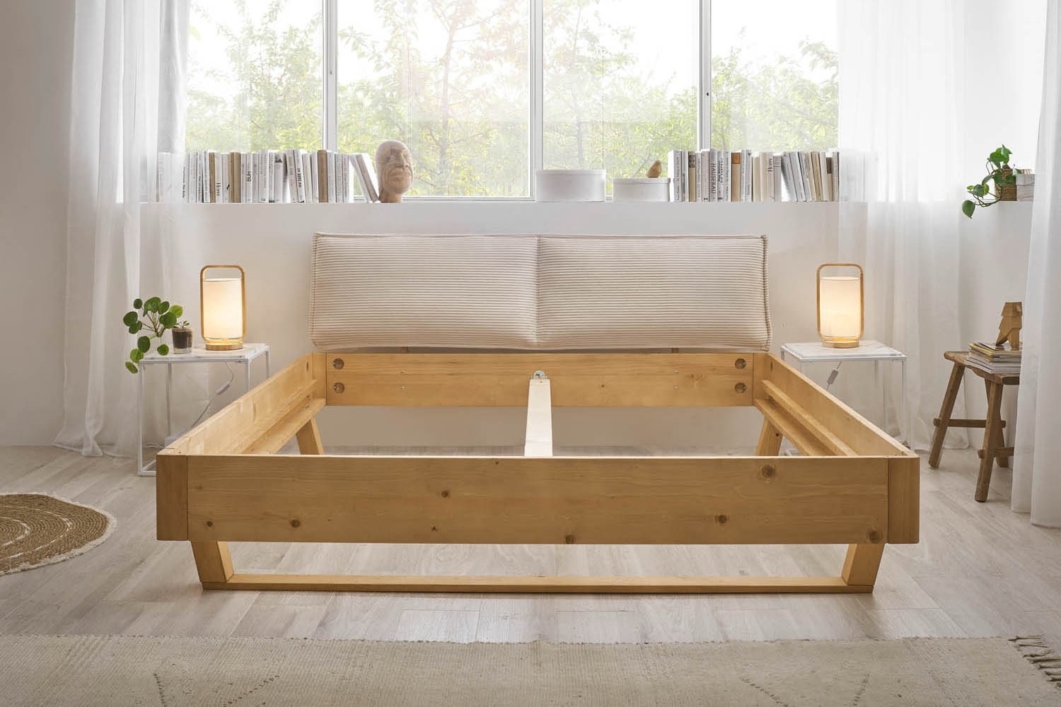 Das Bettgestell ist eine elegante Ergänzung für Ihr Schlafzimmer. Im Lieferumfang ist ein ansprechendes Polsterkopfteil enthalten. Die Farbkombination aus Braun und Creme schafft eine einladende Atmosphäre. Mit einer Liegefläche von 180 x 200 cm bietet das Bett aus Massivholz, speziell Fichte, Stabilität und hochwertige Verarbeitung. Die geölte Oberfläche verleiht einen natürlichen Glanz und betont die Holzstruktur. Ein harmonisches Zusammenspiel aus Funktionalität und ästhetischem Design für einen komfortablen Schlafbereich.