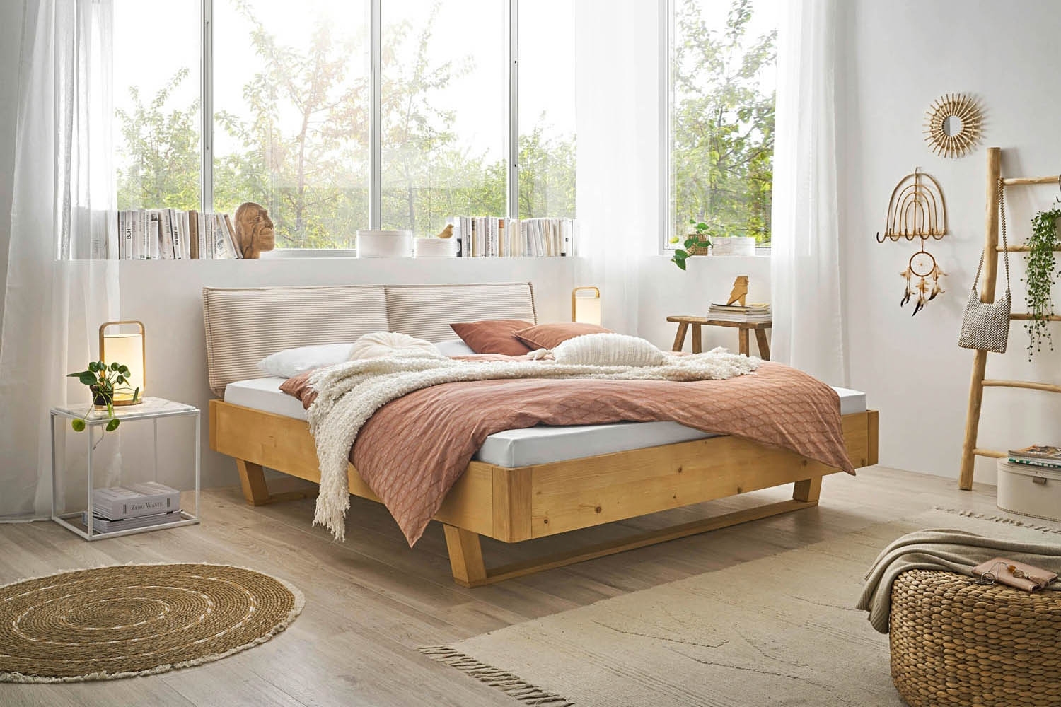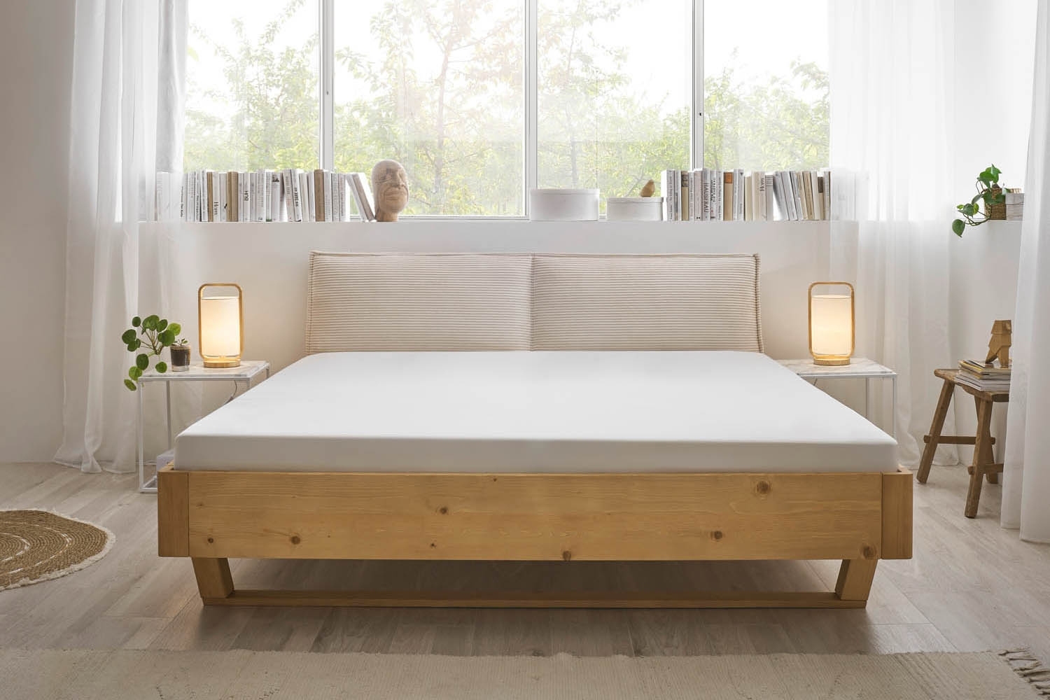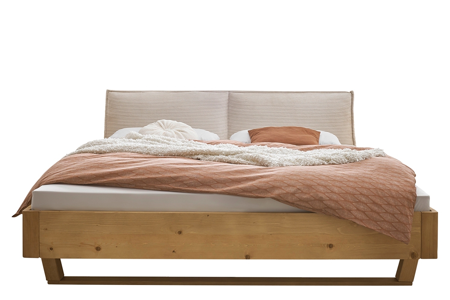 Das Bettgestell ist eine elegante Ergänzung für Ihr Schlafzimmer. Im Lieferumfang ist ein ansprechendes Polsterkopfteil enthalten. Die Farbkombination aus Braun und Creme schafft eine einladende Atmosphäre. Mit einer Liegefläche von 180 x 200 cm bietet das Bett aus Massivholz, speziell Fichte, Stabilität und hochwertige Verarbeitung. Die geölte Oberfläche verleiht einen natürlichen Glanz und betont die Holzstruktur. Ein harmonisches Zusammenspiel aus Funktionalität und ästhetischem Design für einen komfortablen Schlafbereich.