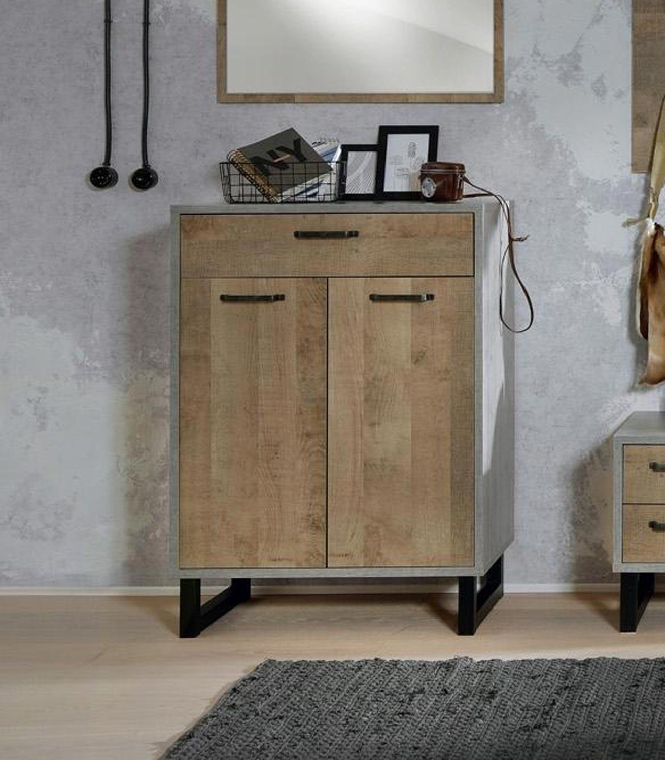 Betondekor - Eiche rustikal Dekor - B 80 cm - 2 Türen - 1 Schublade