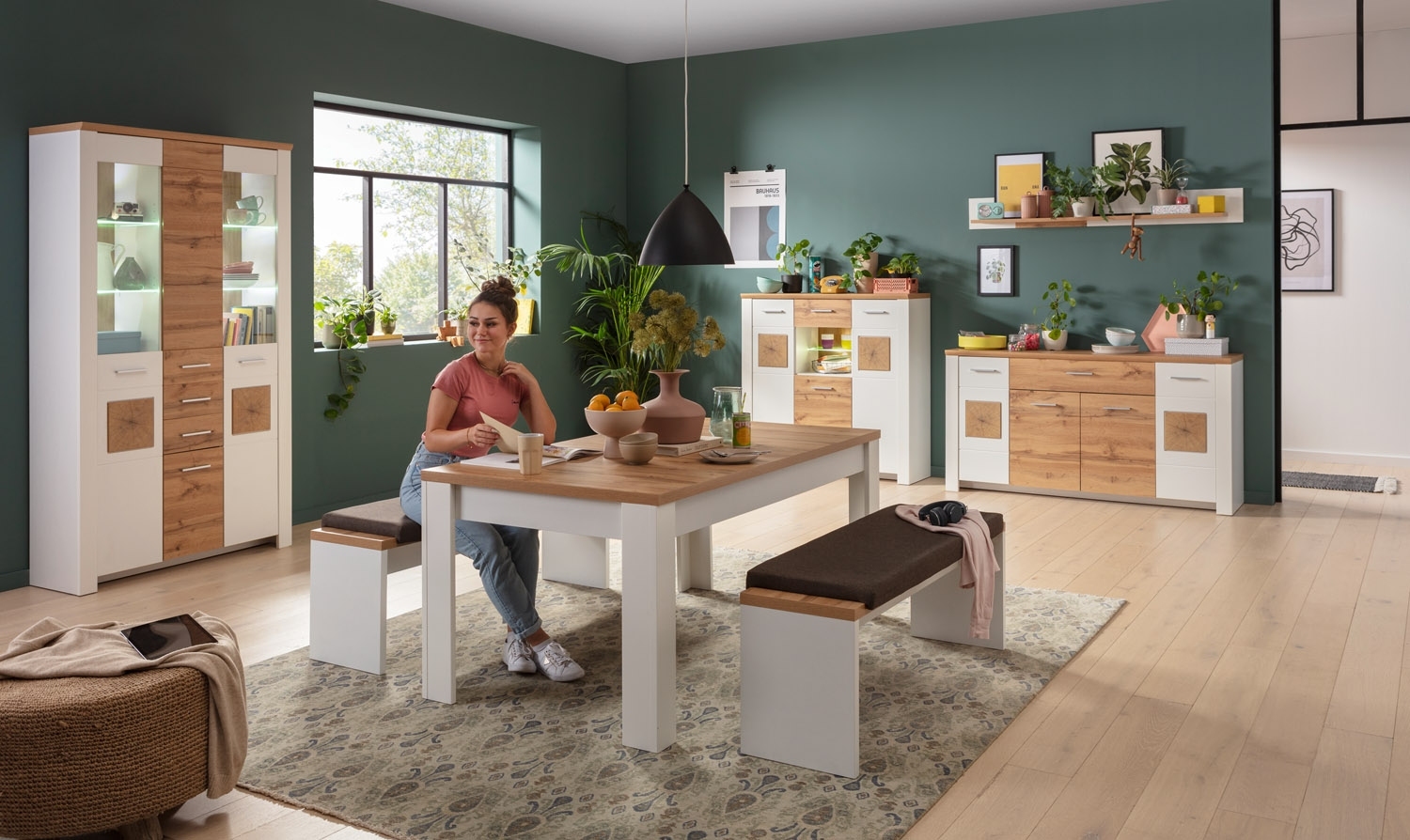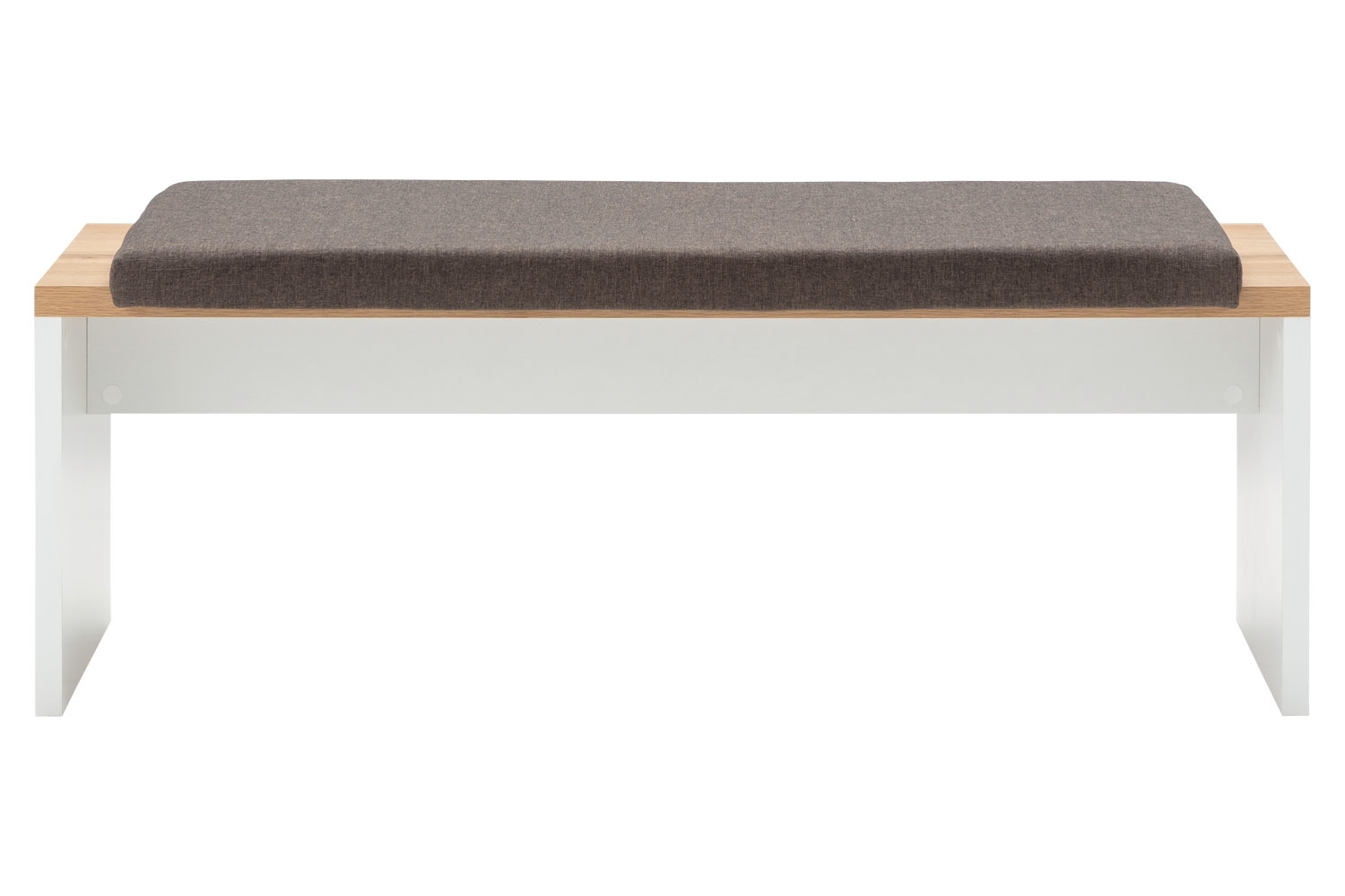 Die Sitzbank MATERA von LIV'IN kombiniert modernes Design mit rustikalem Charme. Das weiße supermatte Dekor des Gestells harmoniert perfekt mit der Sitzfläche in Eiche Altholz Dekor, was einen ansprechenden Kontrast schafft. Die Bank bietet Platz für mindestens 2 Personen und eignet sich ideal für Essbereiche oder Flure. Mit einer Breite von 130 cm, einer Höhe von 49 cm und einer Tiefe von 40 cm passt sie auch in kleinere Räume. Das Klemmkissen aus Webstoff in graubraun ergänzt nicht nur das Design, sondern bietet auch zusätzlichen Sitzkomfort.