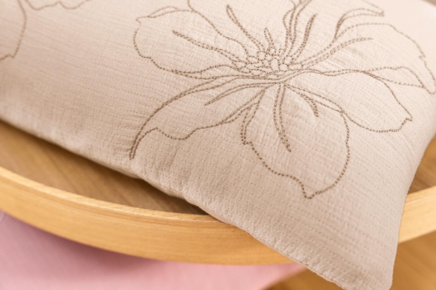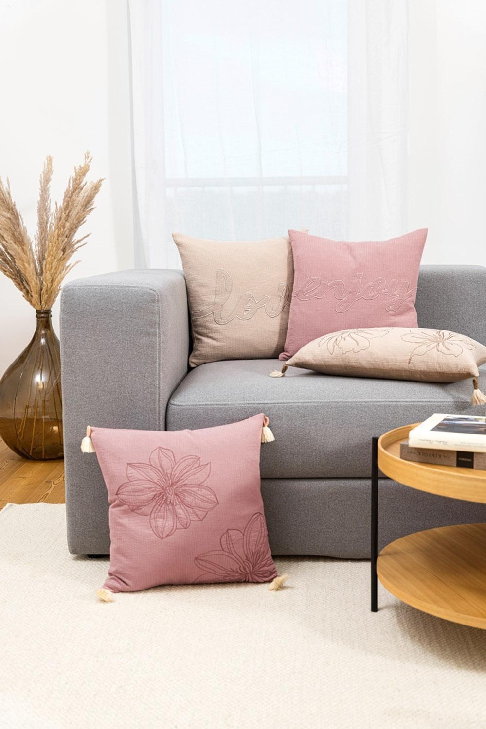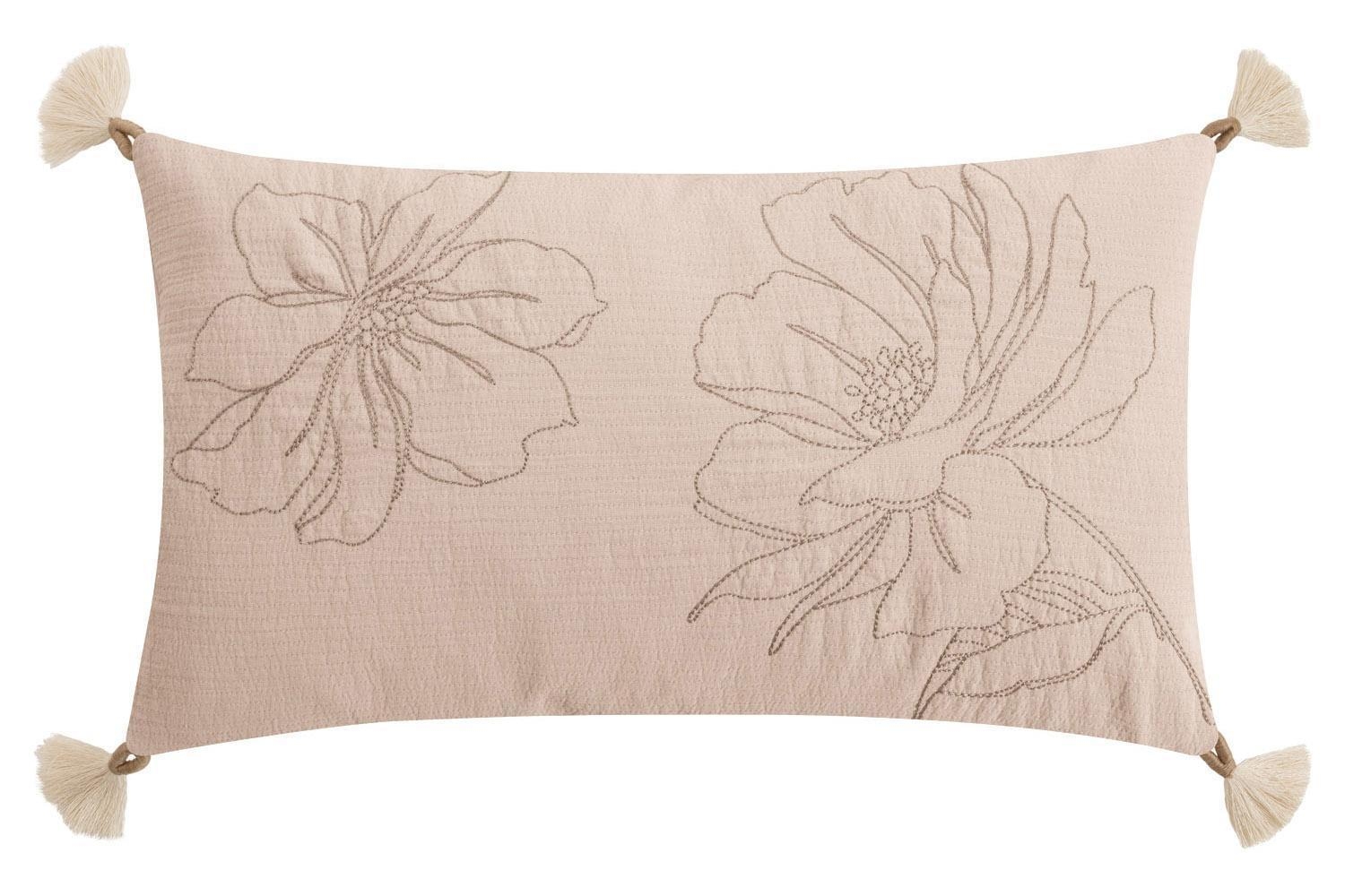 50 x 30 cm - Creme - Baumwolle - mit Blumenstickerei und Quasten