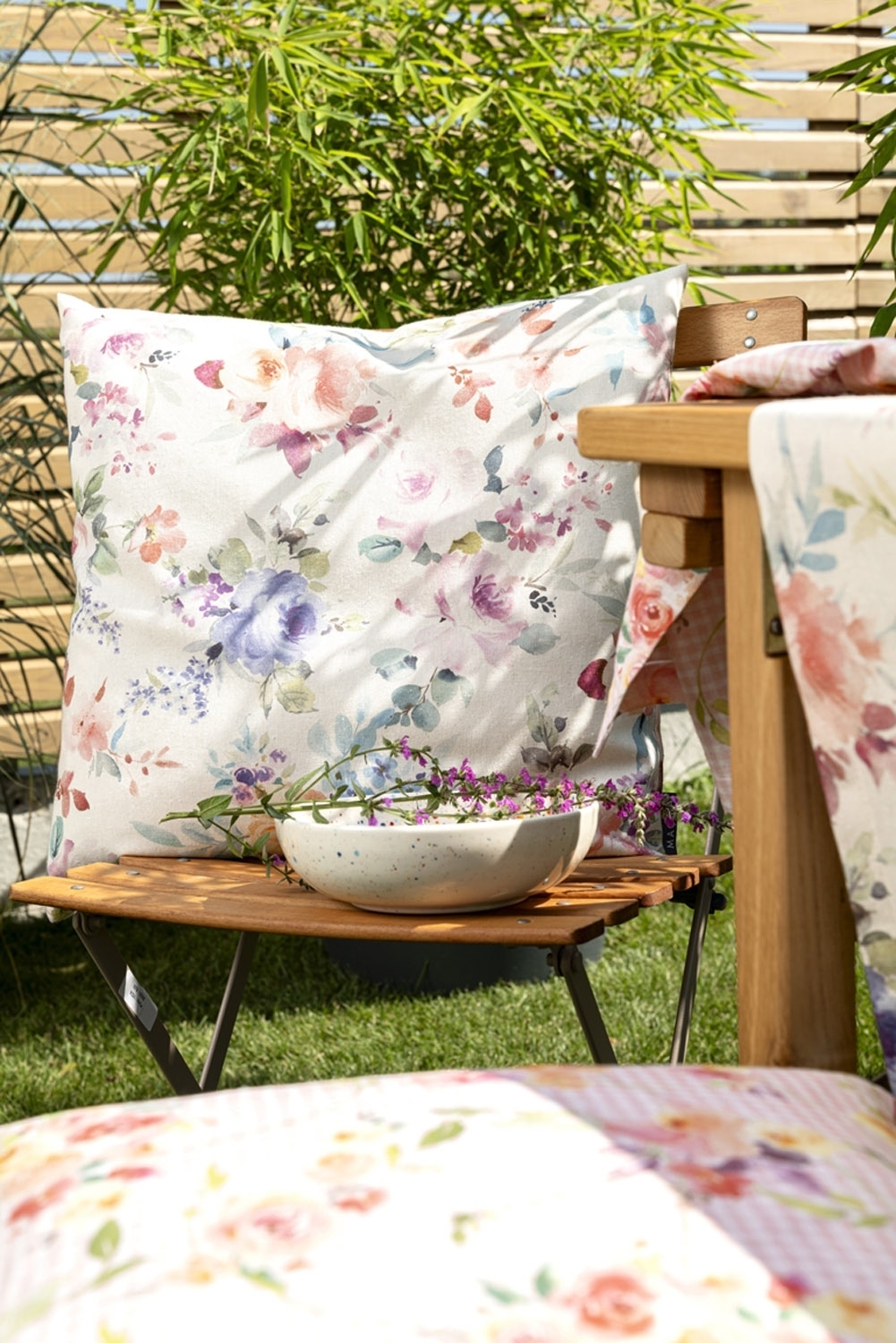 Die Magma Kissenhülle SILVIE mit einer Größe von 40 x 40 cm besticht durch ihr lebendiges Blumenmotiv. Die waschbare Hülle verleiht Ihrem Zuhause eine frische Atmosphäre und kombiniert Stil mit praktischer Funktionalität.