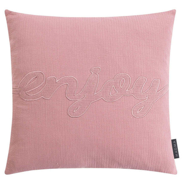 Die Kissenhülle BLOPP von Magma strahlt Lebensfreude aus. In kräftigem Rosa und mit dem gesticktem "Enjoy"-Schriftzug auf der Vorderseite ist sie ein echter Hingucker. Mit einer Größe von 45 x 45 cm aus 100 % Baumwolle ist sie angenehm weich und pflegeleicht. Der praktische Reißverschluss ermöglicht einfaches Beziehen. Waschbar bei 30 °C, verbindet sie Stil und Alltagstauglichkeit perfekt.