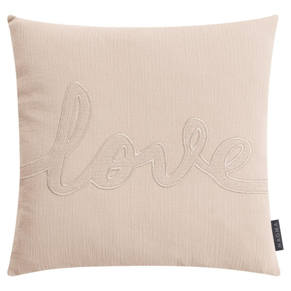 Die Kissenhülle BLOPP von Magma strahlt Lebensfreude aus. In kräftigem Creme und mit dem gesticktem "Love"-Schriftzug auf der Vorderseite ist sie ein echter Hingucker. Mit einer Größe von 45 x 45 cm aus 100 % Baumwolle ist sie angenehm weich und pflegeleicht. Der praktische Reißverschluss ermöglicht einfaches Beziehen. Waschbar bei 30 °C, verbindet sie Stil und Alltagstauglichkeit perfekt.