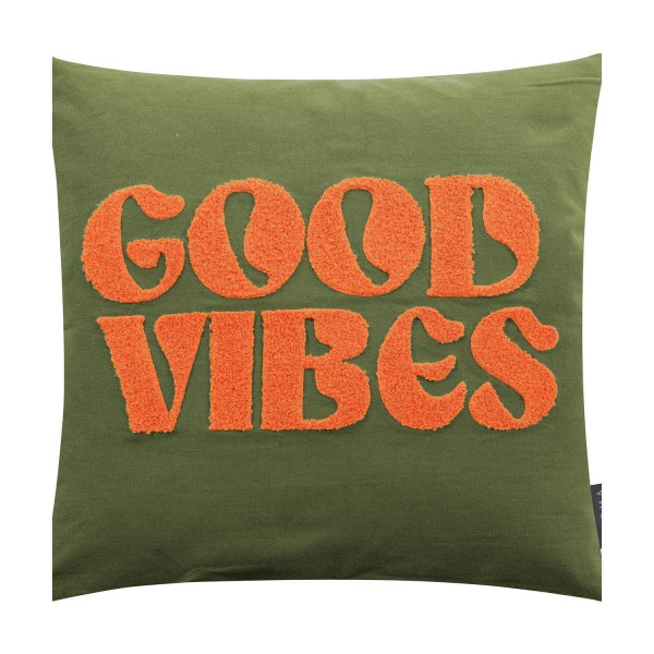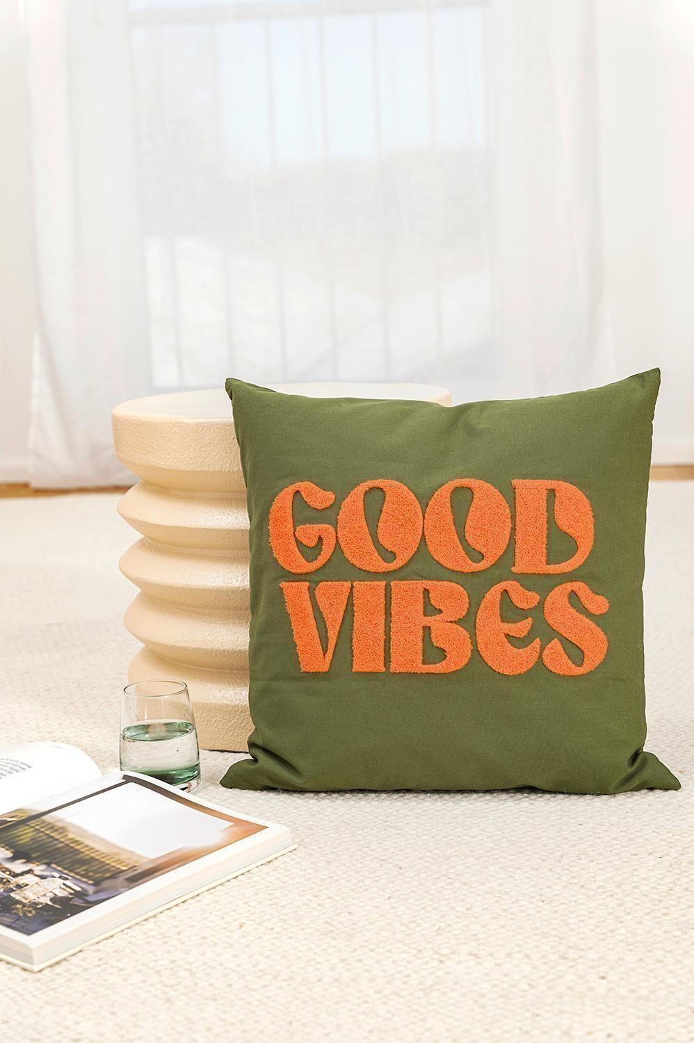 45 x 45 cm - Grün - Orange - Baumwolle - mit Good Vibes Schriftzug