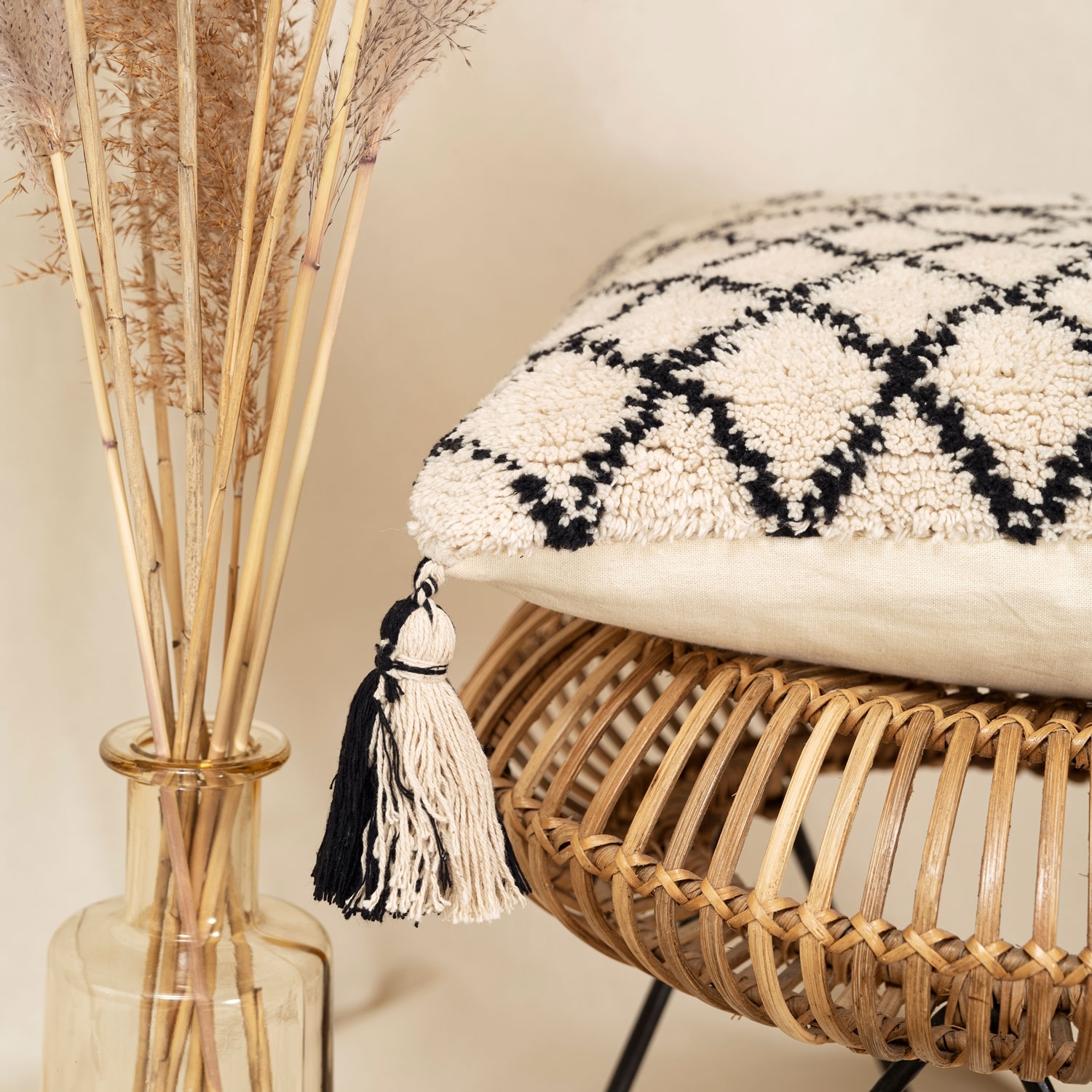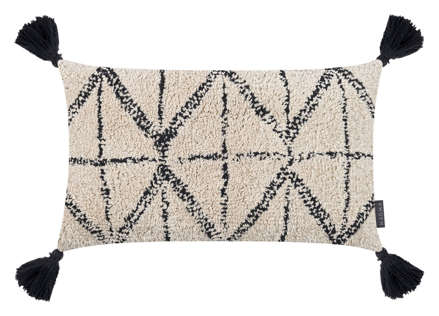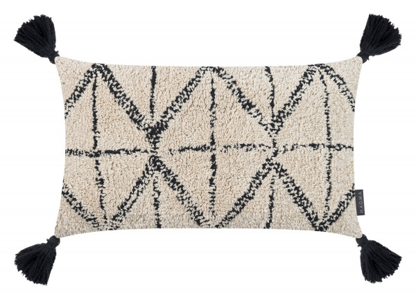 Elfenbeinfarben - Schwarz - Baumwolle - 60 x 35 cm - mit Quasten