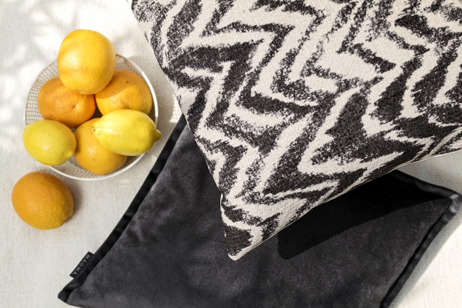Schwarz - Cremeweiß - Polyester - 45 x 45 cm - mit Reißverschluss