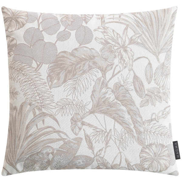 Die Outdoor Kissenhülle NASSAU der Marke Magma besteht aus Polyacryl und ist in den Farben Beige sowie Weiß gestaltet. Dieser Kissenbezug ist mit Blättermotiven verziert und ist schmutz- sowie wasserabweisend, wie auch farbecht und lichtbeständig, was eine Verwendung im Außenbereich ermöglicht. Die Abmessungen dieser quadratischen Hülle belaufen sich auf eine Länge von 50 cm und eine Breite von 50 cm.