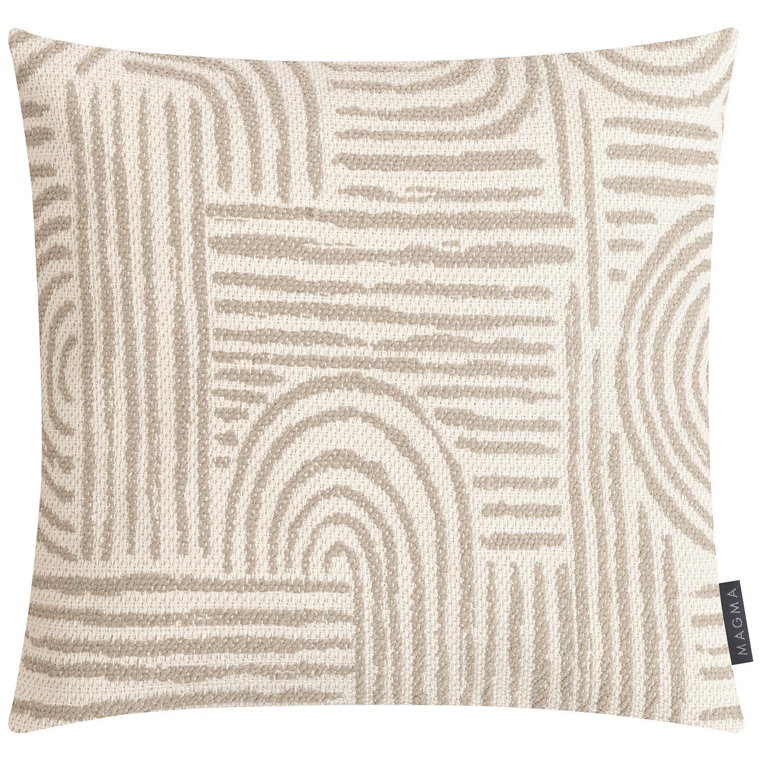 Die Outdoor Kissenhülle PAROS der Marke Magma besteht aus Polypropylen und ist in den Farben Creme sowie Weiß gestaltet. Während die Vorderseite dieses Kissenbezugs mit graphischen Mustern verziert ist, ist die Rückseite einfarbig und ohne Muster gehalten. Das Textil ist schmutz- und wasserabweisend, farbecht sowie lichtbeständig und verfügt über reißfeste Materialeigenschaften. Die Abmessungen dieser Hülle belaufen sich auf eine Länge von 45 cm und eine Breite von 45 cm.