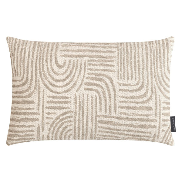 Die Outdoor Kissenhülle PAROS der Marke Magma besteht aus Polypropylen und ist in den Farben Creme sowie Weiß gestaltet. Während die Vorderseite dieses Kissenbezugs mit graphischen Mustern verziert ist, ist die Rückseite einfarbig und ohne Muster gehalten. Das Textil ist schmutz- und wasserabweisend, farbecht sowie lichtbeständig und verfügt über reißfeste Materialeigenschaften. Die Abmessungen dieser Hülle belaufen sich auf eine Länge von 60 cm und eine Breite von 40 cm.