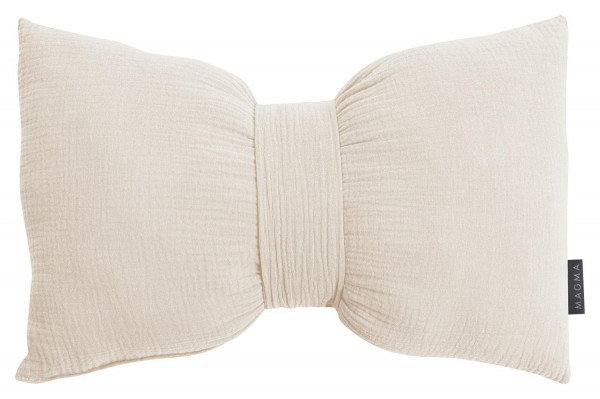 Das Schleifen-Kissen OLINE von Magma ist ein charmantes Accessoire in Elfenbeinfarben. In Musselinoptik gefertigt und aus 100 % Baumwolle, vereint es Stil und Komfort. Mit einer Größe von 45 x 30 cm und seiner dekorativen Schleifenform setzt es wohnliche Akzente. Das pflegeleichte Kissen ist bei 30 °C waschbar und somit ideal für gemütliche und zugleich praktische Einrichtungsideen.