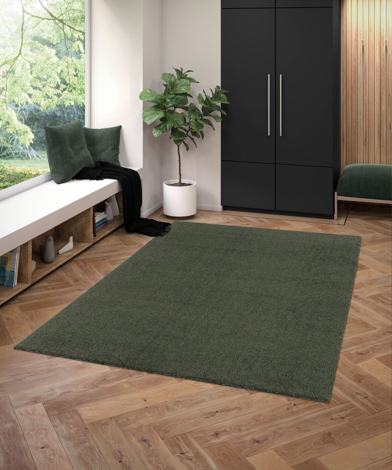 Der Maschinenwebteppich KISS besticht durch seine elegante Schlichtheit und Funktionalität. Hergestellt aus Polyester in Grün, fügt er sich nahtlos in jede Einrichtung ein. Der einfarbige Teppich ohne Musterung ist bei Temperaturen bis zu 40 °C waschbar und trocknergeeignet, was die Pflege besonders einfach macht. Mit einer Länge von 230 cm und einer Breite von 160 cm passt er perfekt in mittelgroße Räume. Die Florhöhe von 12 mm sorgt für ein angenehmes Laufgefühl und zusätzlichen Komfort.