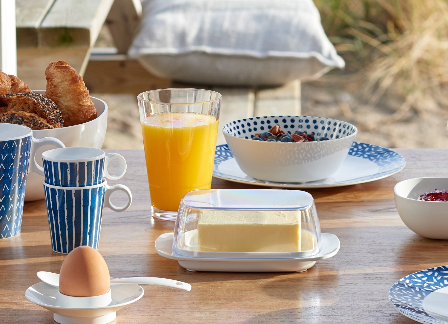 Die Butterdose BREAKFAST der Marke Mepal besteht aus Kunststoff in Weiß. Der transparente Kunststoffdeckel ermöglicht einen klaren Blick auf den Inhalt. Sie ist für Butterstücke bis zu 250 g geeignet und bleibt dank rutschfester Standfüße stabil. Zudem ist sie spülmaschinengeeignet, was die Reinigung erleichtert. Ihre Abmessungen betragen 17 cm in der Breite, 6,4 cm in der Höhe und 9,8 cm in der Tiefe.