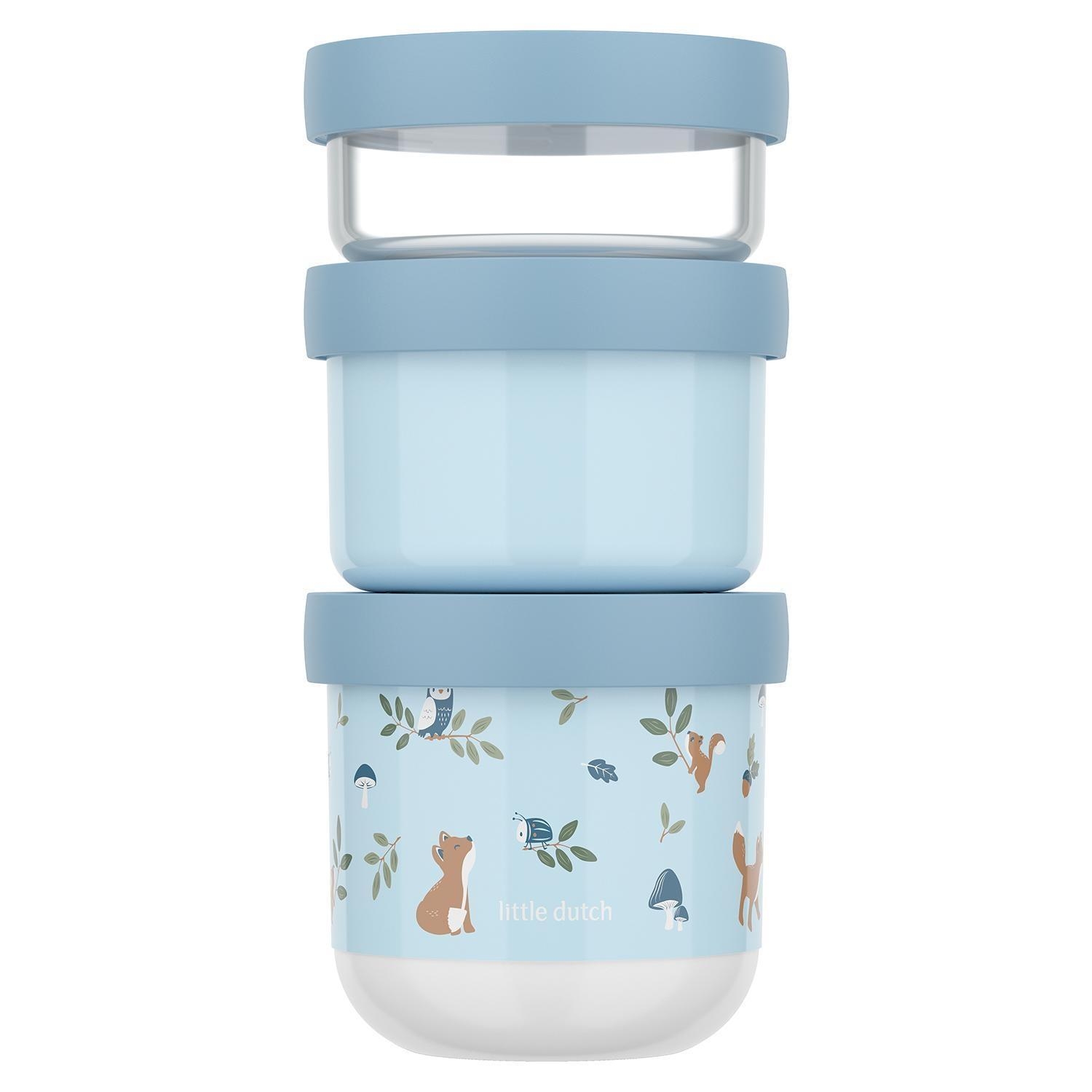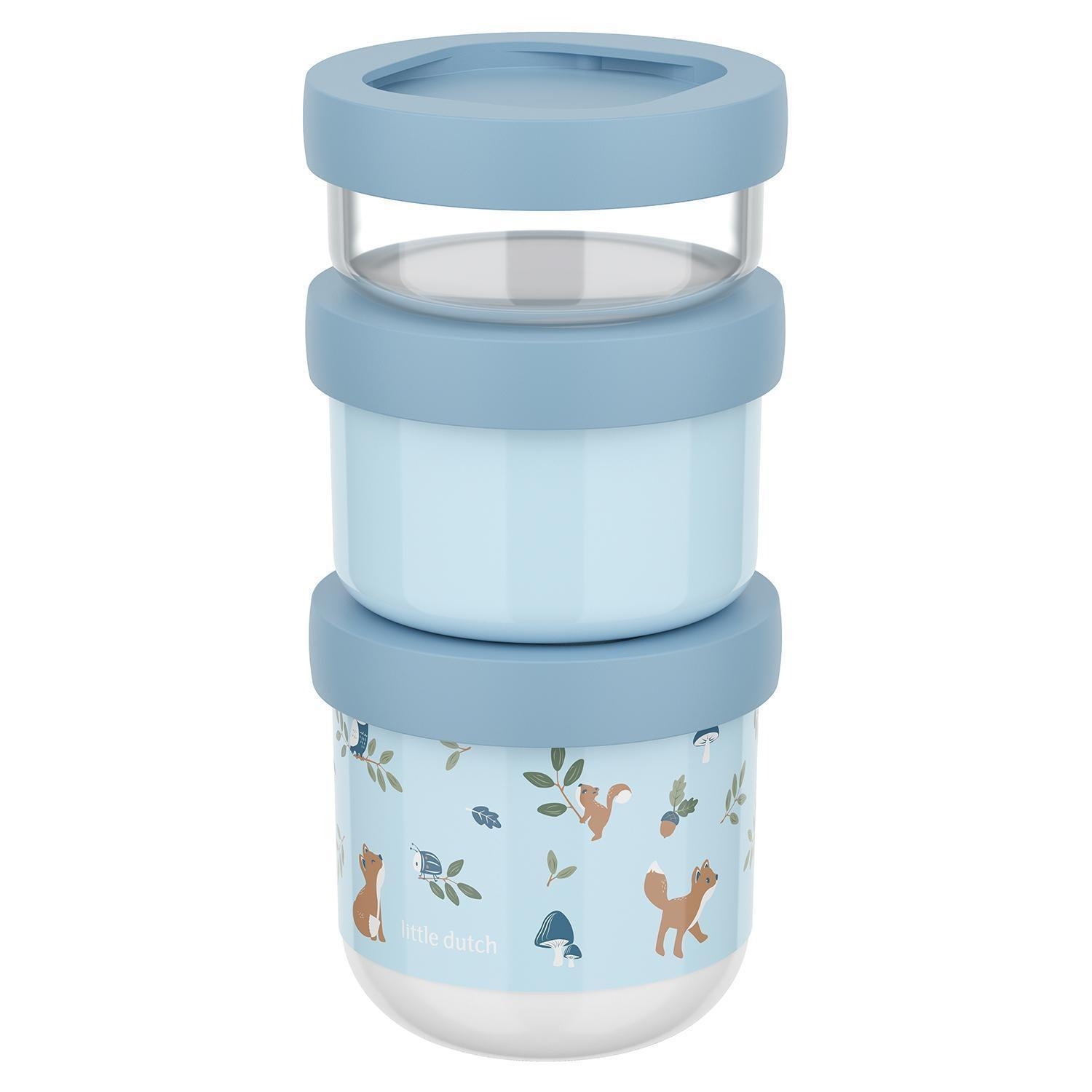 - 3-teilige Snackbox in Blau mit weißen Deckeln