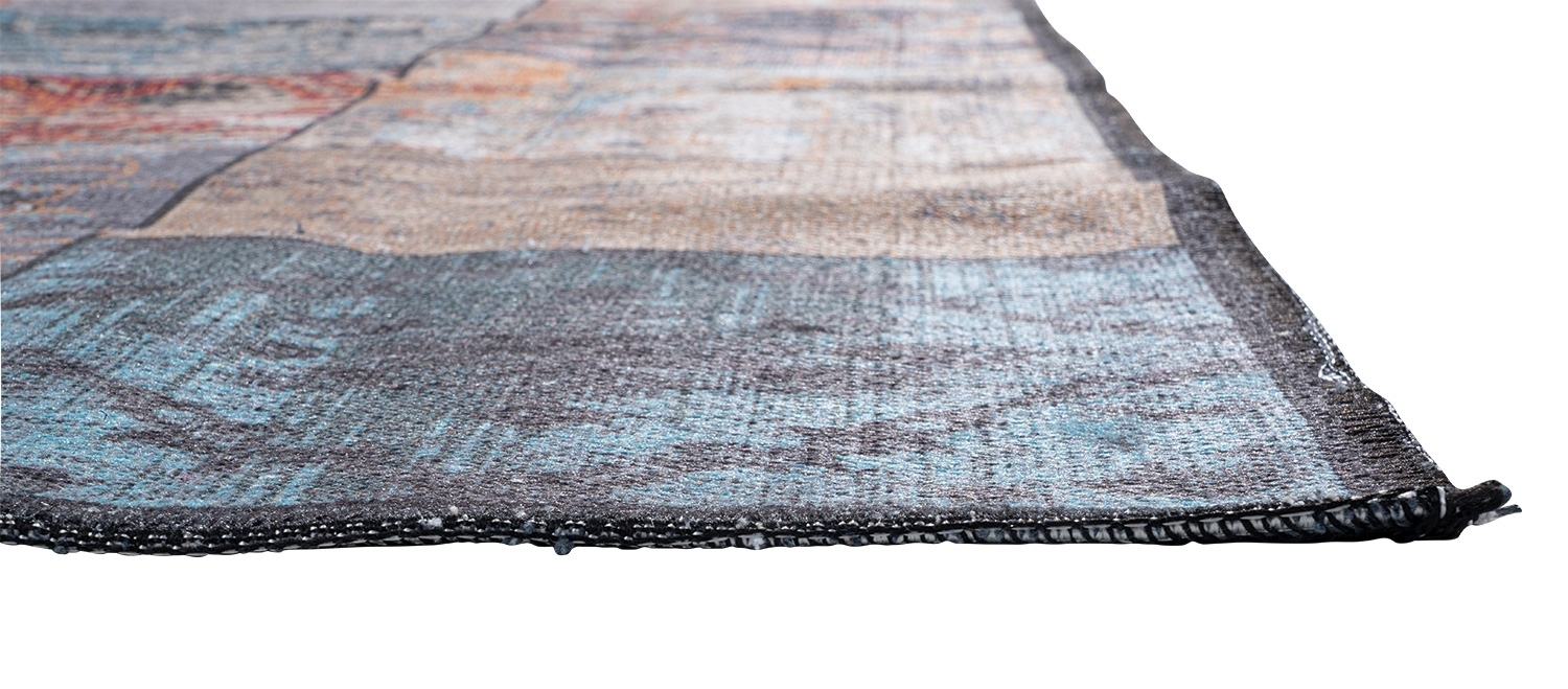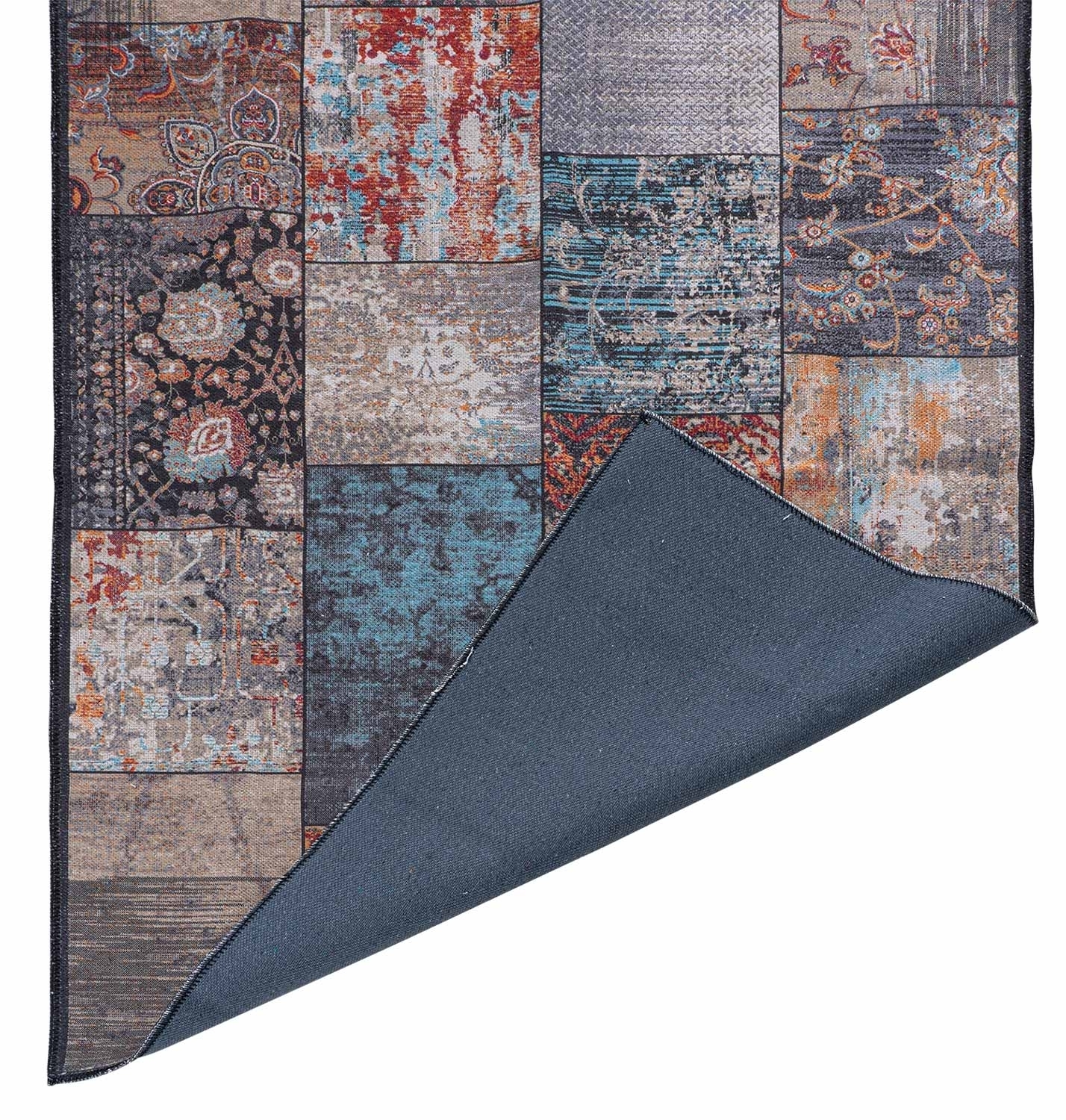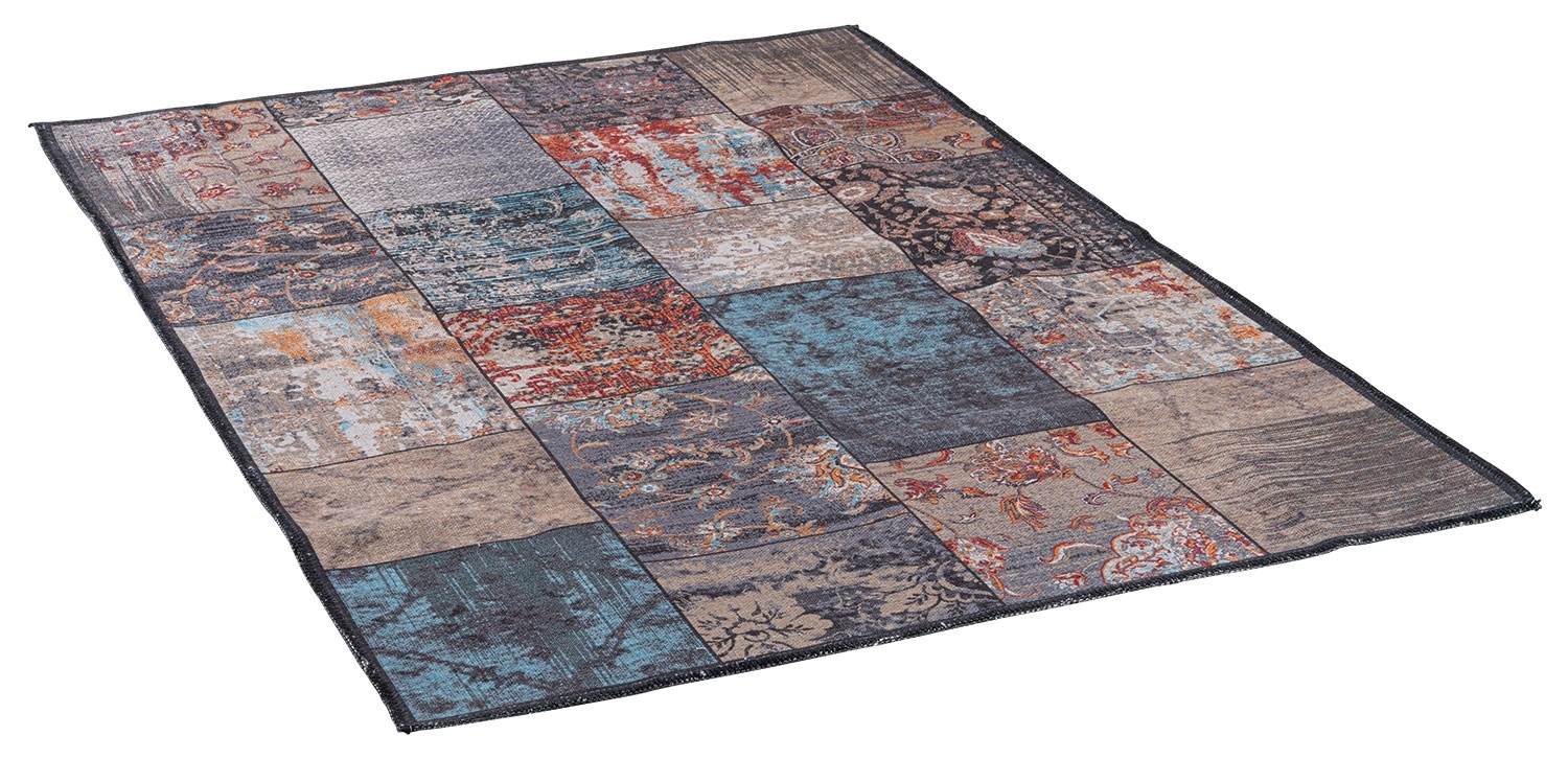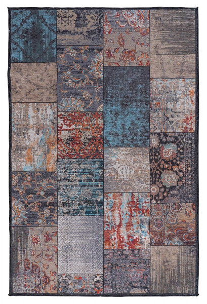 Braun - Blau - Rot - 200 x 290 cm - mit Patchworkmuster