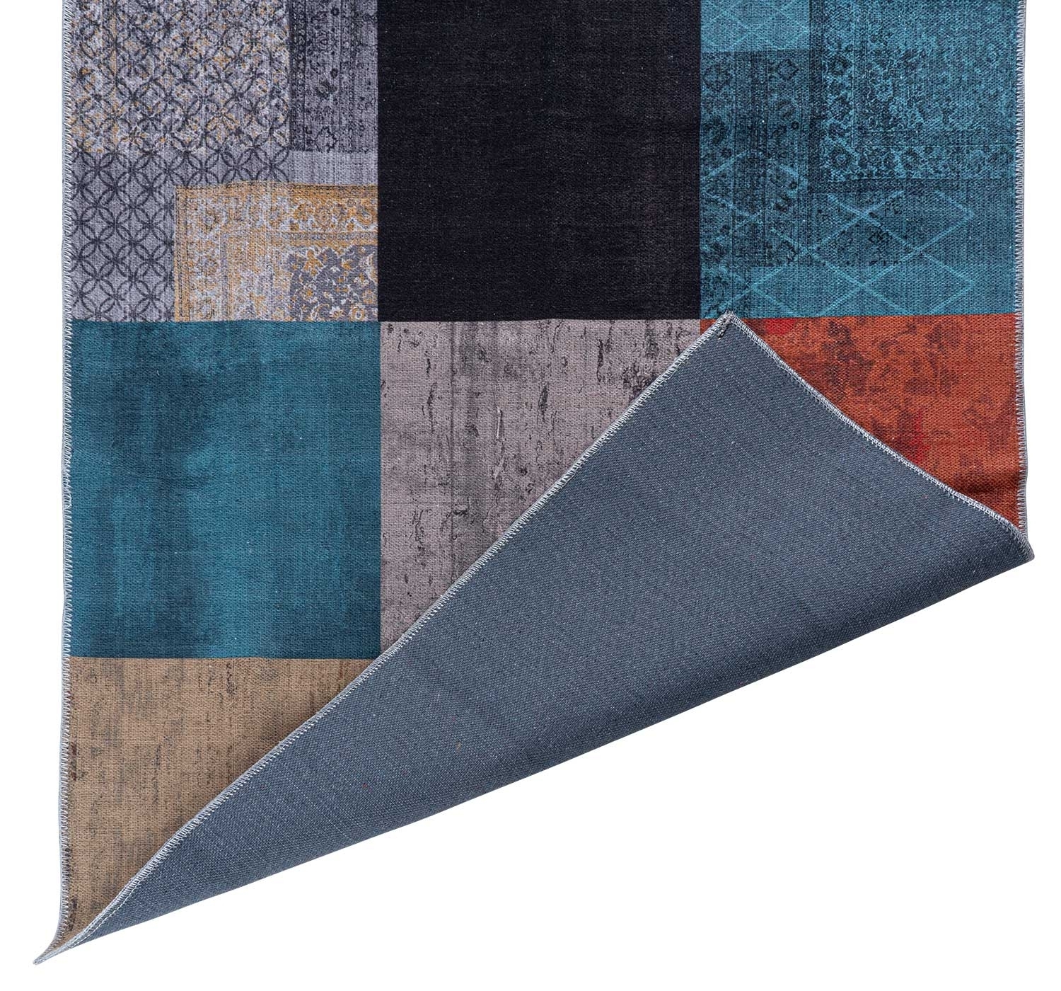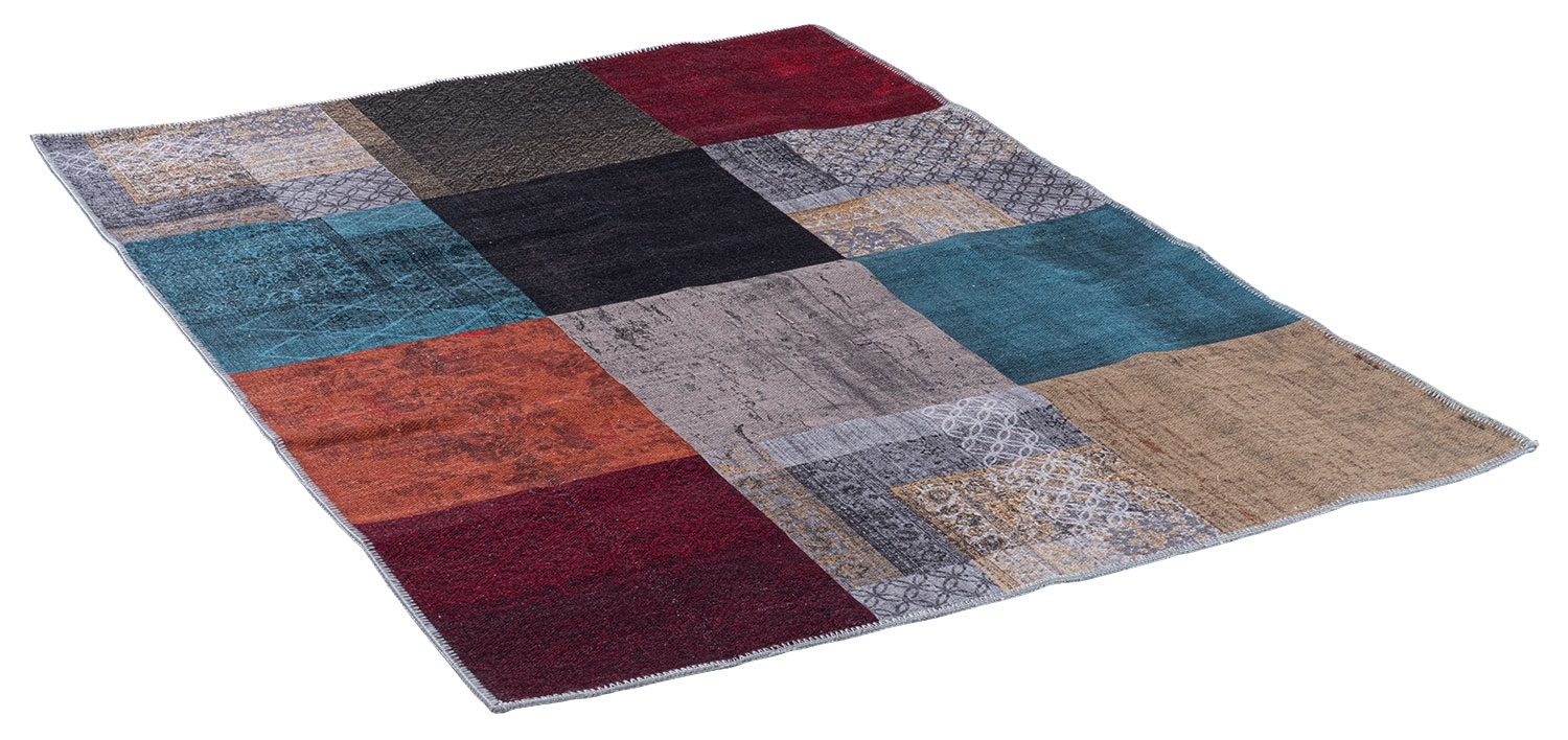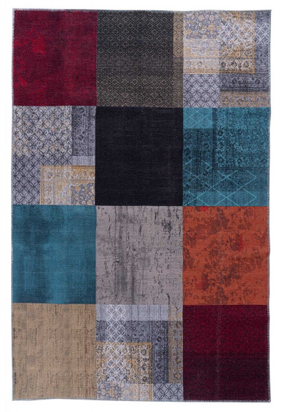 Rot - Blau - Grau - 200 x 290 cm - mit Patchworkmuster