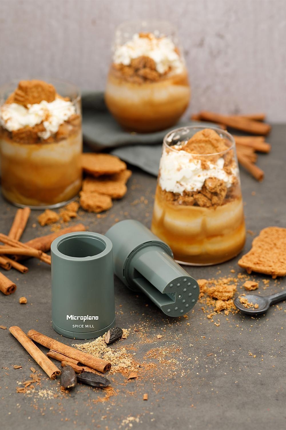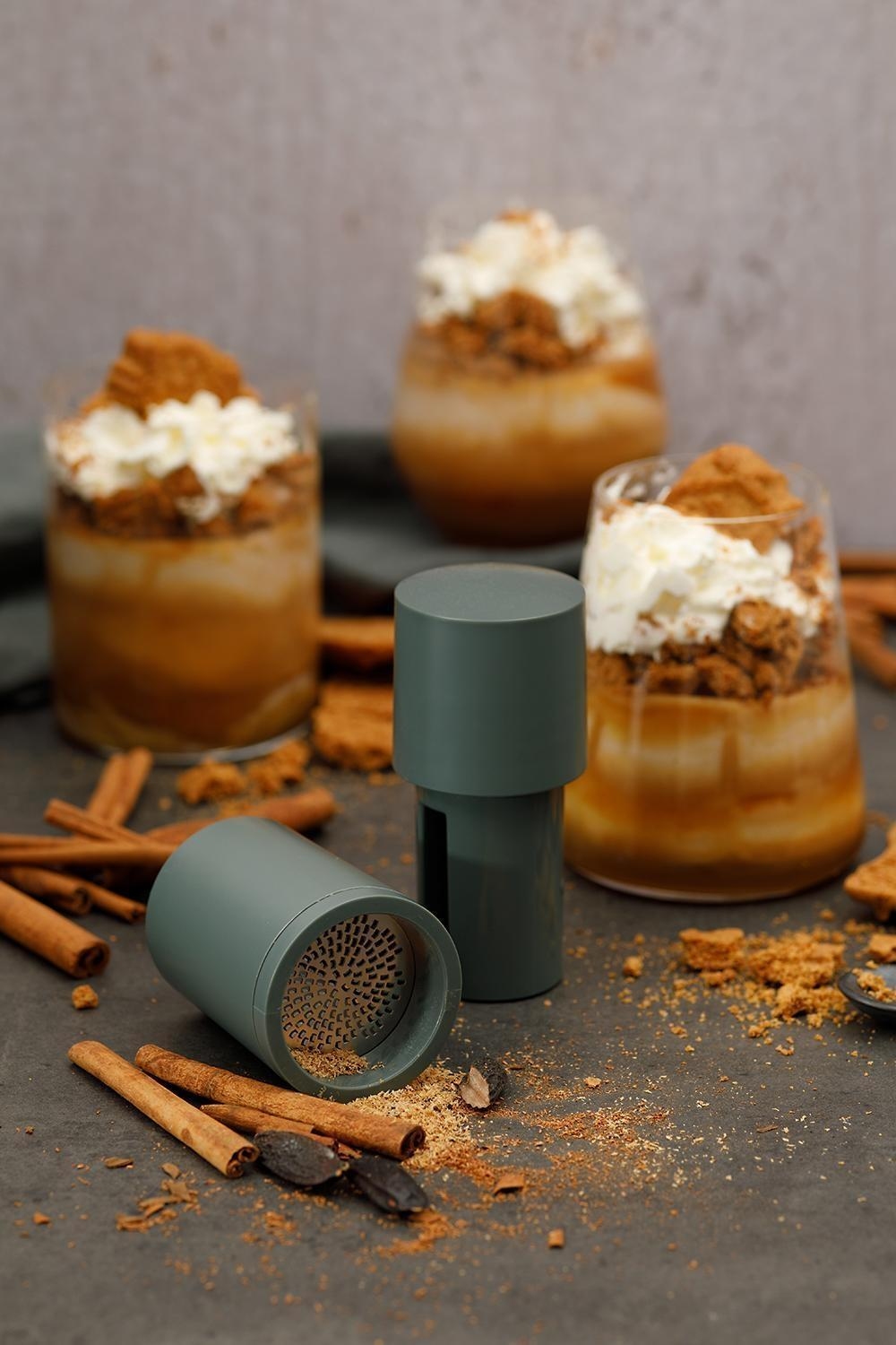 - Gewürze können im Aufsatz aufbewahrt werden