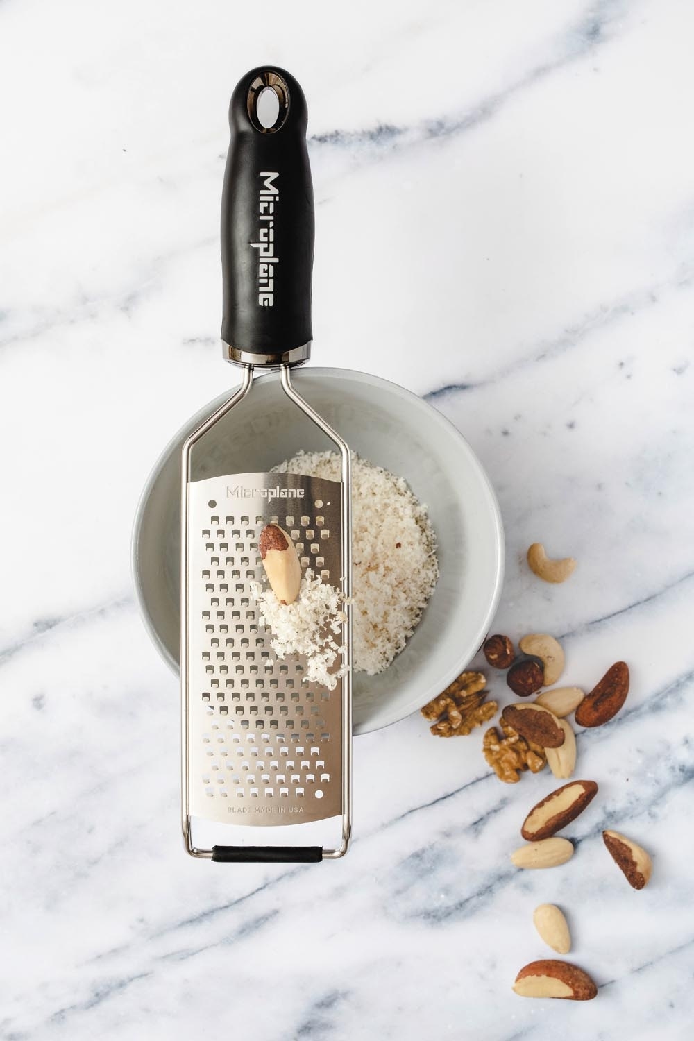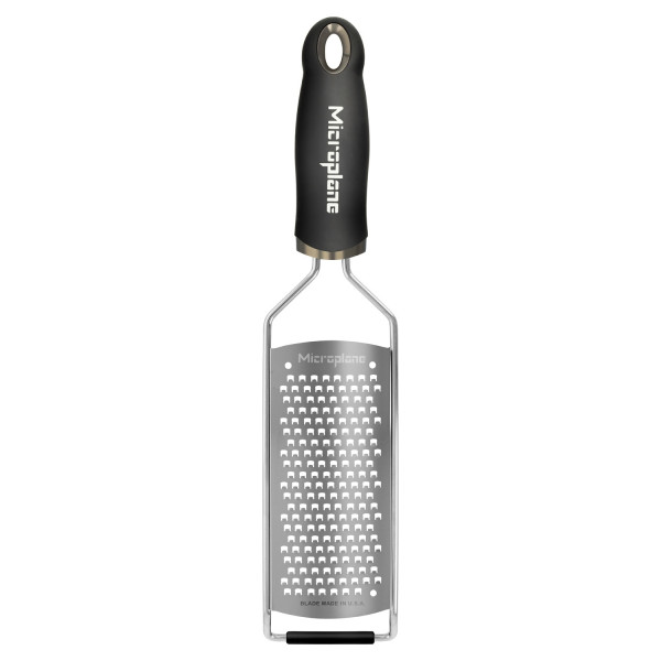 Die Grobreibe GOURMET von Microplane ist ein unverzichtbares Werkzeug in jeder Küche. Hergestellt aus photogeätztem Edelstahl bietet sie eine robuste und langlebige Reibefläche für Karotten, Käse, Knoblauch und mehr. Der ergonomische Soft-Touch-Griff sorgt für eine komfortable Nutzung. Mit einem standfesten Gummifuß bleibt die Reibe während des Gebrauchs sicher an ihrem Platz. Mit einer Länge von 31,5 cm, einer Breite von 7,5 cm und einer Höhe von 3 cm bietet sie ausreichend Platz und Komfort. Dank ihrer Spülmaschinenfestigkeit ist sie auch leicht zu reinigen.