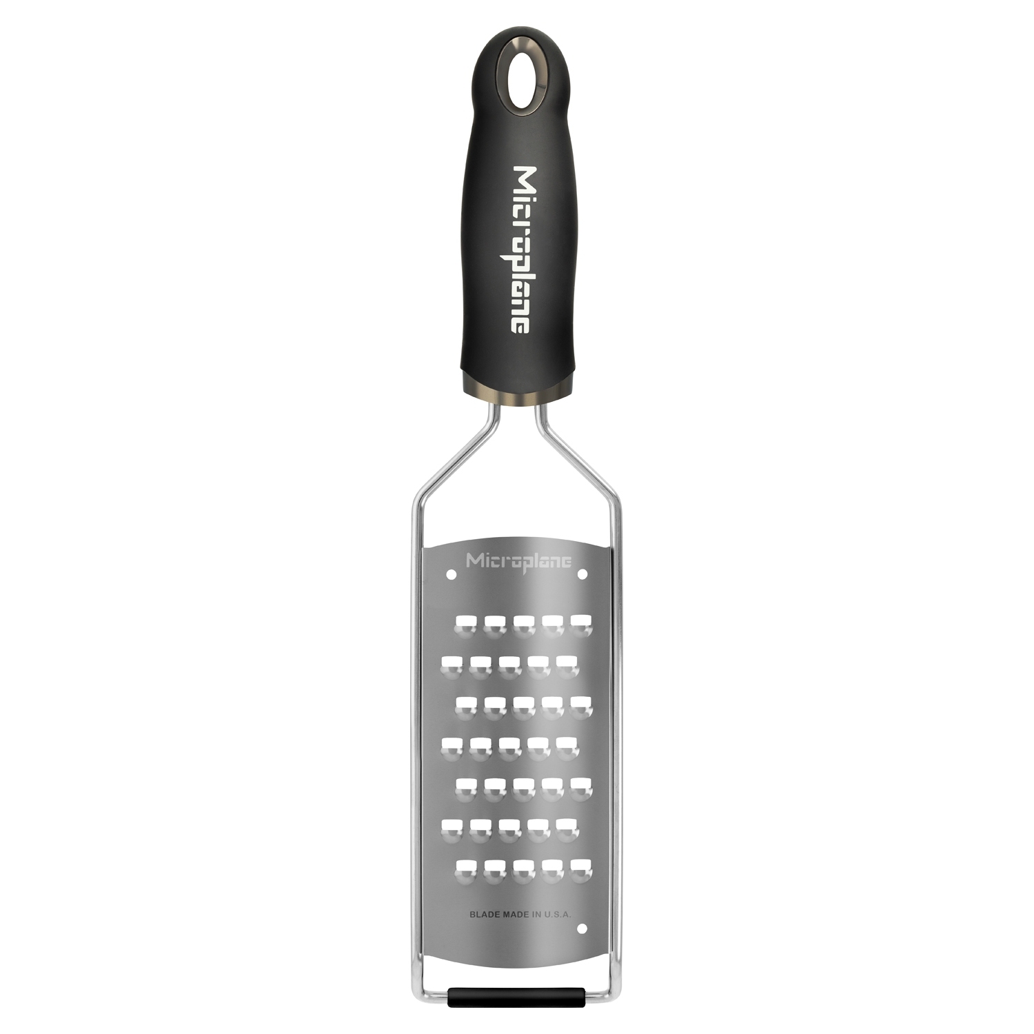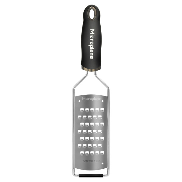 Die Grobreibe GOURMET von Microplane ist ein unverzichtbares Werkzeug in jeder Küche. Hergestellt aus photogeätztem Edelstahl bietet sie eine robuste und langlebige Reibefläche für Käse, Kartoffeln, Äpfel und mehr. Der ergonomische Soft-Touch-Griff sorgt für eine komfortable Nutzung. Mit einem standfesten Gummifuß bleibt die Reibe während des Gebrauchs sicher an ihrem Platz. Mit einer Länge von 31,5 cm, einer Breite von 7,5 cm und einer Höhe von 3 cm bietet sie ausreichend Platz und Komfort. Dank ihrer Spülmaschinenfestigkeit ist sie auch leicht zu reinigen.