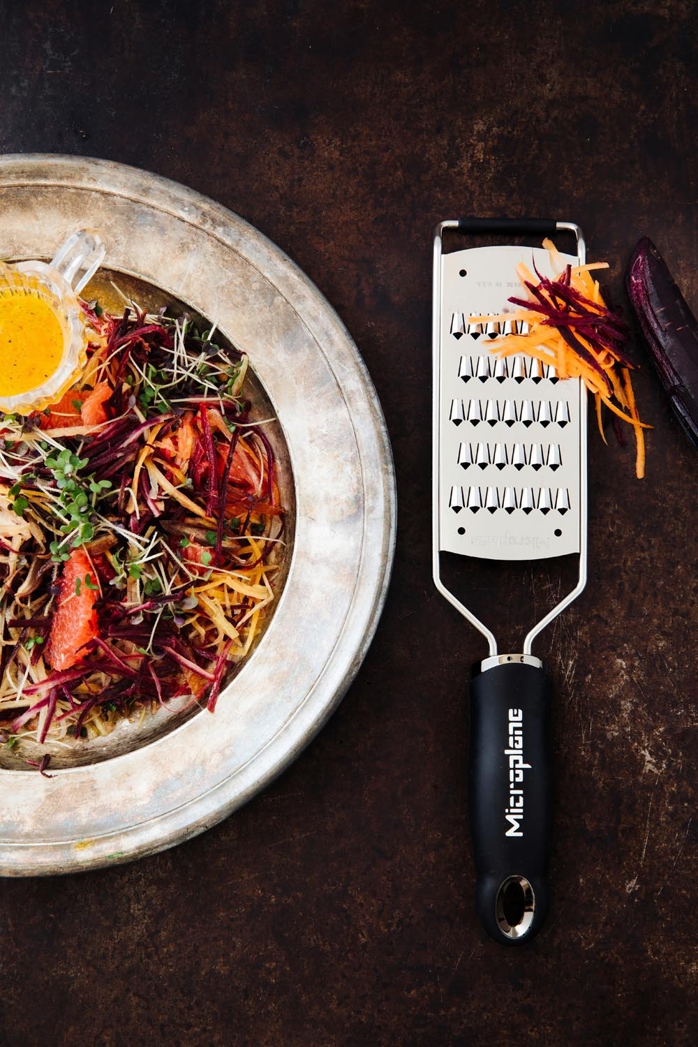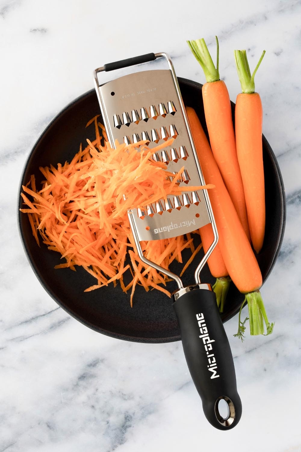Die Juliennereibe GOURMET von Microplane ist ein praktisches Werkzeug für die Küche. Hergestellt aus hochwertigem photogeätztem Edelstahl bietet sie eine feine Reibefläche, ideal für das Herstellen von dünnen Juliennestreifen aus verschiedenen Zutaten. Der ergonomische Soft-Touch-Griff sorgt für eine angenehme Handhabung während des Gebrauchs. Ein standfester Gummifuß gewährleistet Stabilität beim Reiben. Mit einer Länge von 31,5 cm, einer Breite von 7,5 cm und einer Höhe von 3 cm bietet sie ausreichend Platz und Komfort. Zudem ist die Reibe spülmaschinenfest, was die Reinigung erleichtert und Zeit spart.