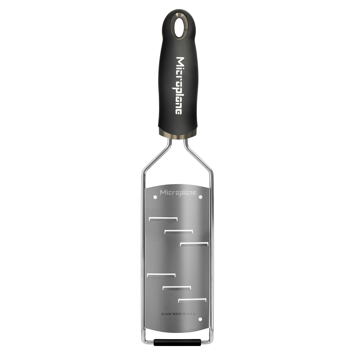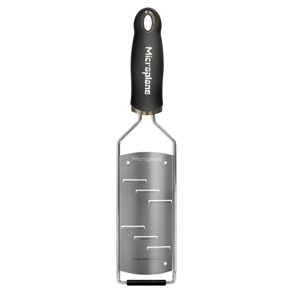 Die Raspelreibe GOURMET von Microplane ist ein unverzichtbares Werkzeug in jeder Küche. Hergestellt aus photogeätztem Edelstahl bietet sie eine robuste und langlebige Reibefläche für Hartkäse, Schokolade und mehr. Der ergonomische Soft-Touch-Griff sorgt für eine komfortable Nutzung. Mit einem standfesten Gummifuß bleibt die Reibe während des Gebrauchs sicher an ihrem Platz. Mit einer Länge von 31,5 cm, einer Breite von 7,5 cm und einer Höhe von 3 cm bietet sie ausreichend Platz und Komfort. Dank ihrer Spülmaschinenfestigkeit ist sie auch leicht zu reinigen.