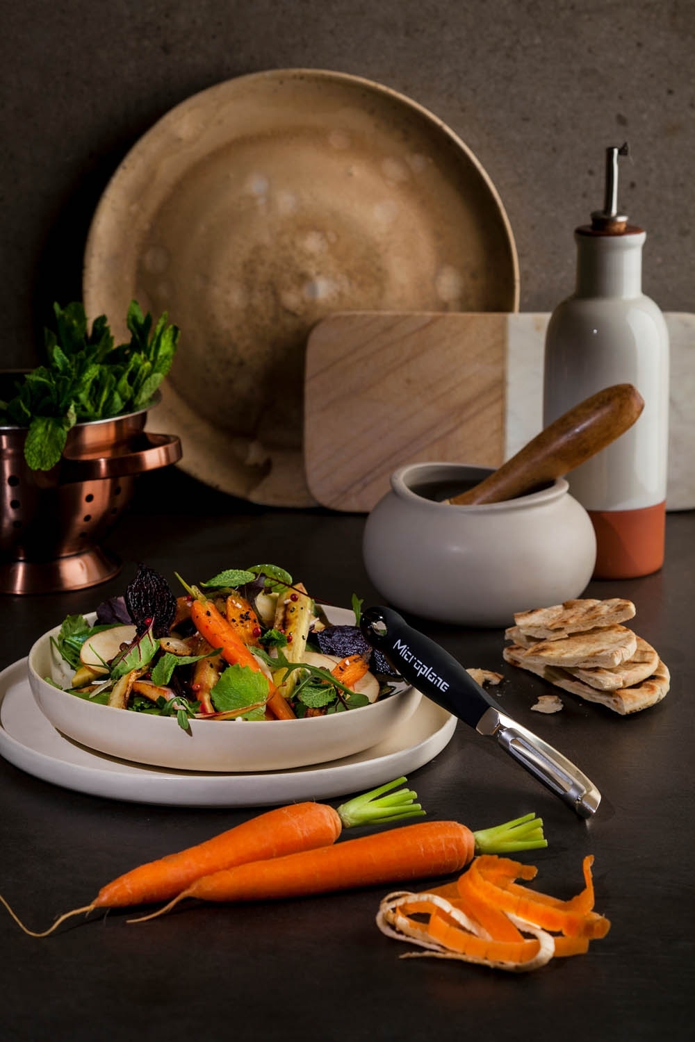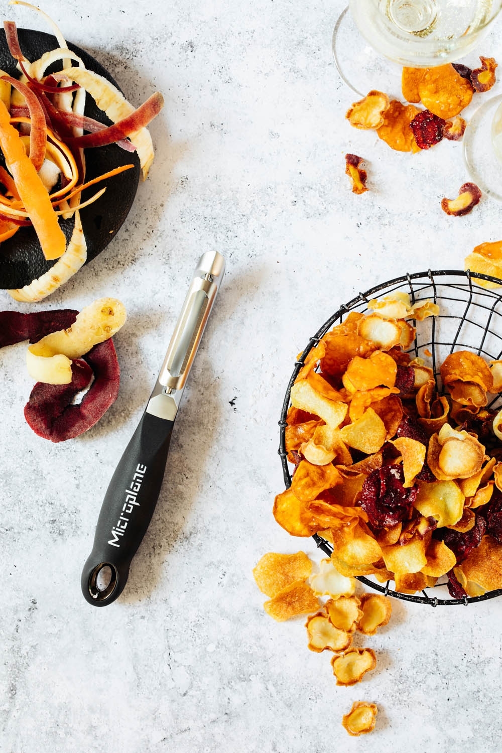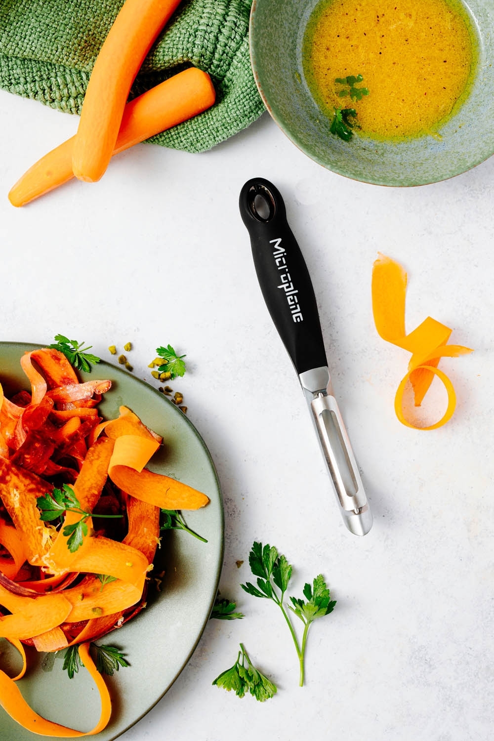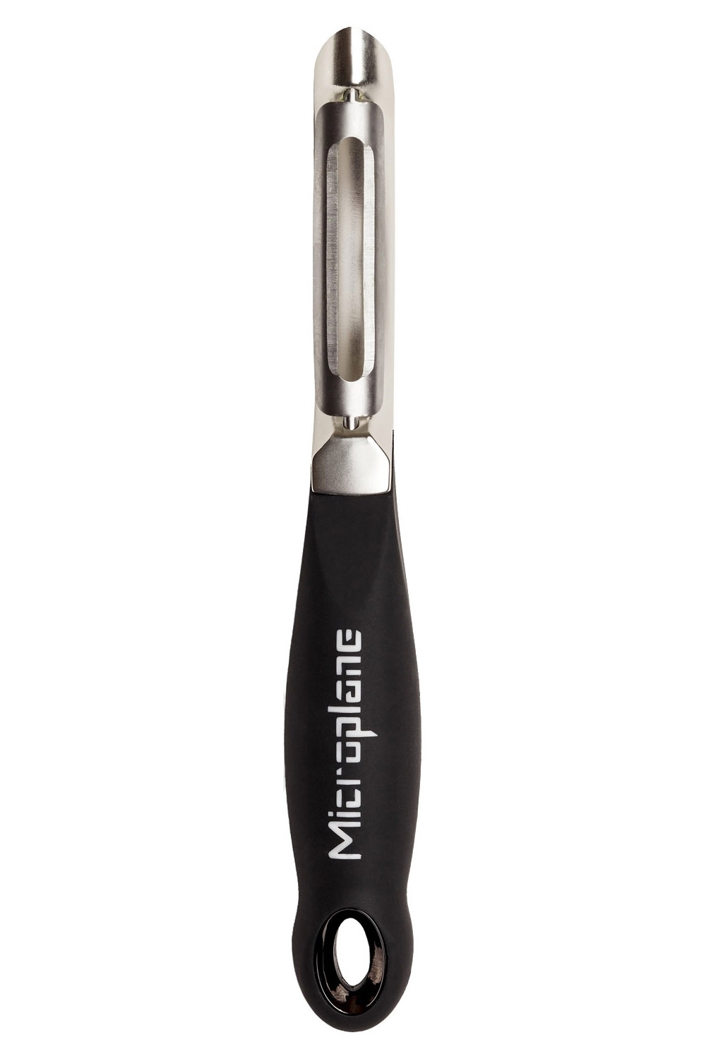 Der Schäler SPECIALTY von Microplane ist ein unverzichtbares Werkzeug in jeder Küche. Hergestellt aus photogeätztem Edelstahl bietet sie eine robuste und langlebige Klinge für Karotten, Gurken, Zucchini, Kartoffeln, Pastinaken, Spargel, Mangos und Äpfel. Der ergonomische Soft-Touch-Griff sorgt für eine komfortable Nutzung. Mit einer Länge von 18,5 cm, einer Breite von 2,5 cm und einer Höhe von 2,5 cm bietet sie ausreichend Platz und Komfort. Dank ihrer Spülmaschinenfestigkeit ist sie auch leicht zu reinigen.