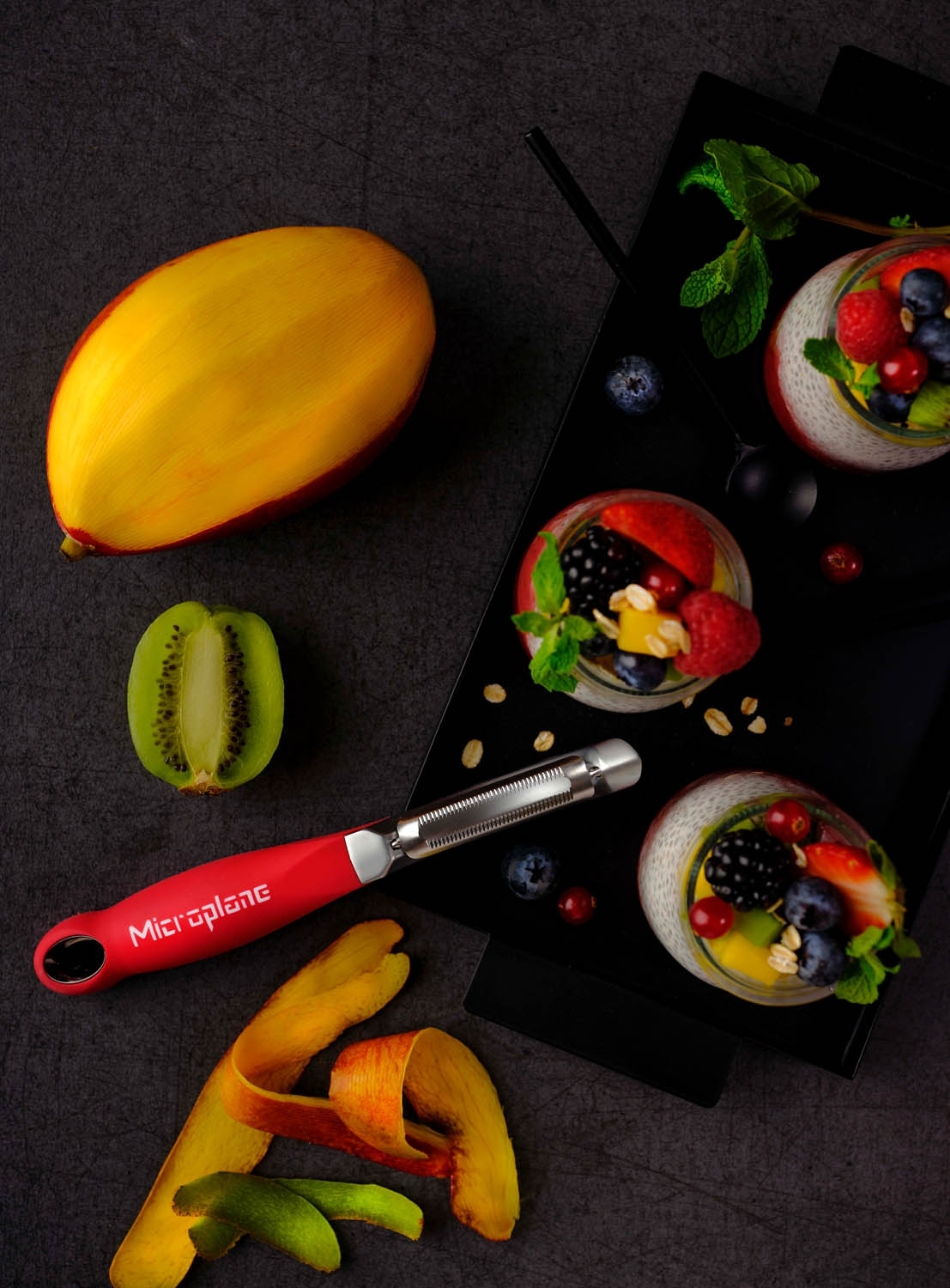Der Schäler SPECIALTY von Microplane ist ein unverzichtbares Werkzeug in jeder Küche. Hergestellt aus photogeätztem Edelstahl bietet sie eine robuste und langlebige Klinge für Karotten, Gurken, Zucchini, Kartoffeln, Pastinaken, Spargel, Mangos und Äpfel. Der ergonomische Soft-Touch-Griff sorgt für eine komfortable Nutzung. Mit einer Länge von 18,5 cm, einer Breite von 2,5 cm und einer Höhe von 2,5 cm bietet sie ausreichend Platz und Komfort. Dank ihrer Spülmaschinenfestigkeit ist sie auch leicht zu reinigen.
