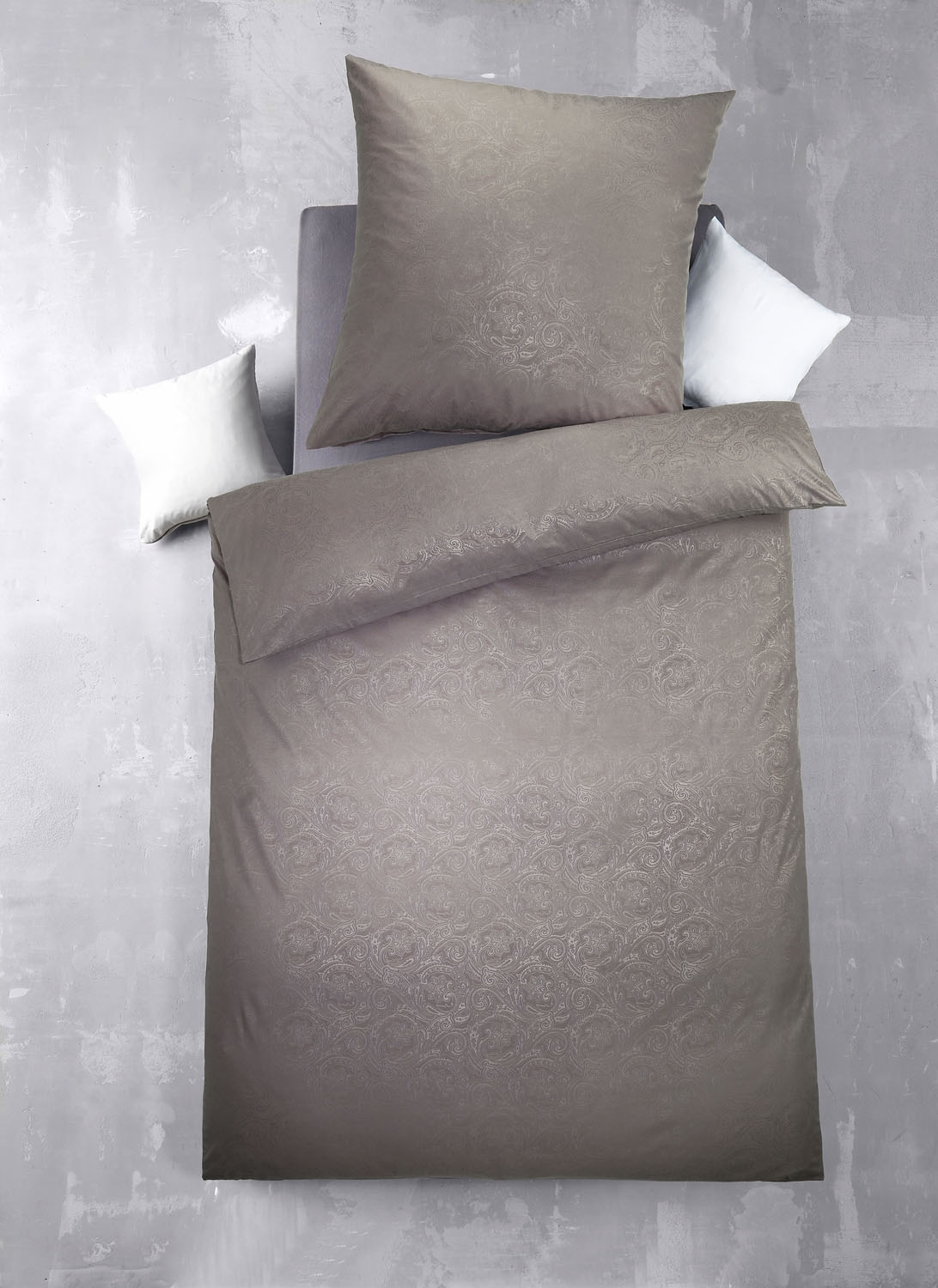 Die Mikrofaser-Bettwäsche in Taupe verleiht Ihrem Schlafzimmer mit ihrem eleganten Paisleymuster-Prägedruck eine stilvolle Note. Hergestellt aus Mikrofaser, bietet sie ein angenehmes Schlafklima. Ausgestattet mit einem praktischen Reißverschluss, ist die Bettwäsche bis 60 °C waschbar und trocknergeeignet. Der Deckenbezug misst 135 x 200 cm, der Kissenbezug 80 x 80 cm.
