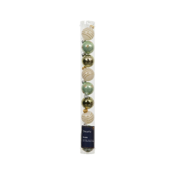 - 9 Mini-Weihnachtskugeln in Creme und verschiedenen Grüntönen