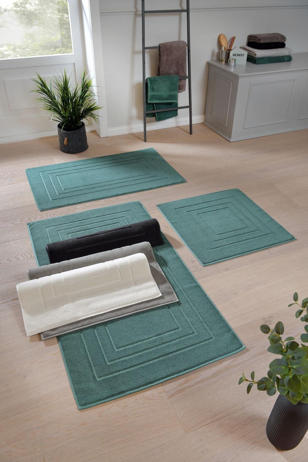 Die Badematte FENRO in Dunkelgrün von MONDO wird aus Baumwolle gefertigt und weist eine Breite von 60 cm auf. Damit ist diese Baumwolle Badematte ein pflegeleichtes attraktives Accessoire für das Badezimmer.