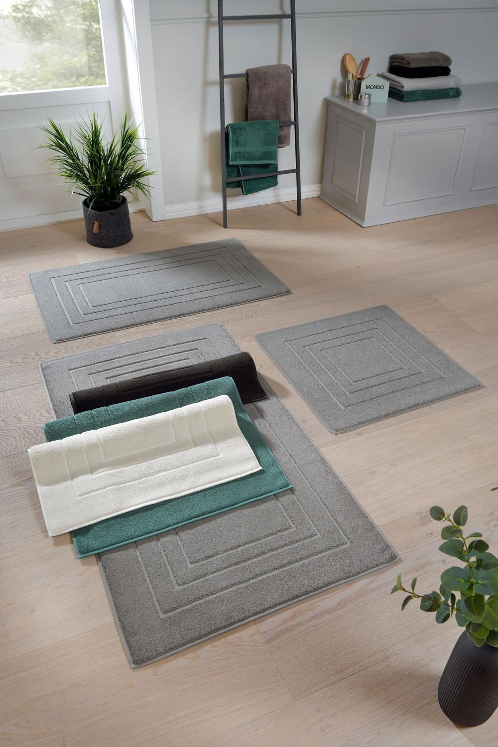 Die Badematte FENRO in Grau von MONDO wird aus Baumwolle gefertigt und weist eine Breite von 60 cm auf. Damit ist diese Baumwolle Badematte ein pflegeleichtes attraktives Accessoire für das Badezimmer.