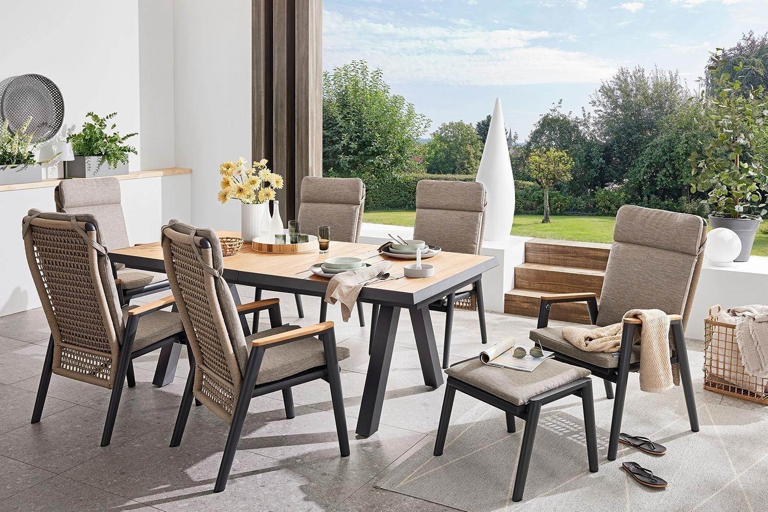 Anthrazit - Grau - Taupe - Aluminiumgestell - Polypropylen - Teakholz - mit Kissen
